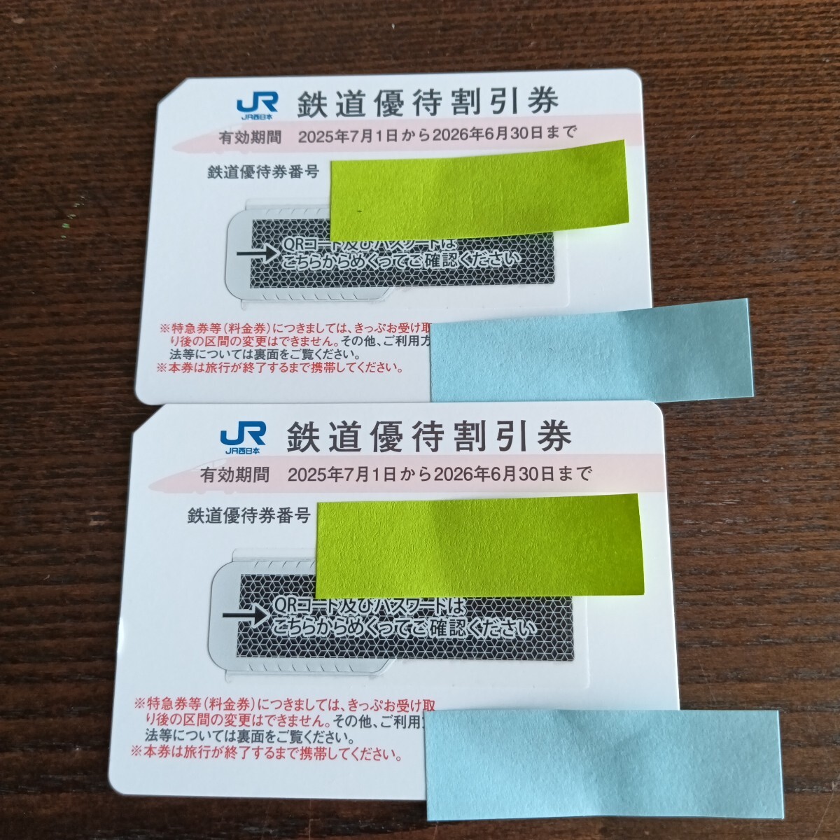 JR西日本の鉄道優待割引券 2枚です。