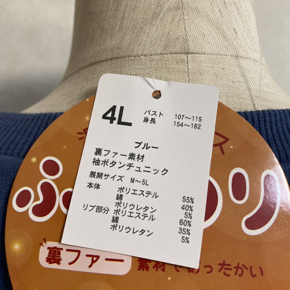 KN2112 *4L 大きいサイズ 裏ファー袖ボタンチュニック