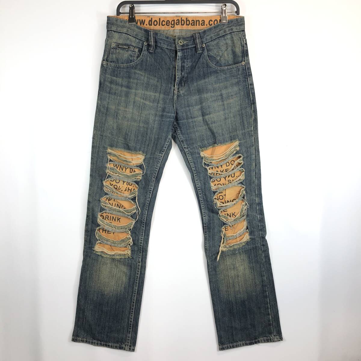 FW2006 Dolce & Gabbana Orange Poem Faded Jeans ドルチェ&ガッバーナ クラッシュデニム W32 イタリア製