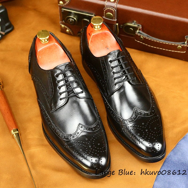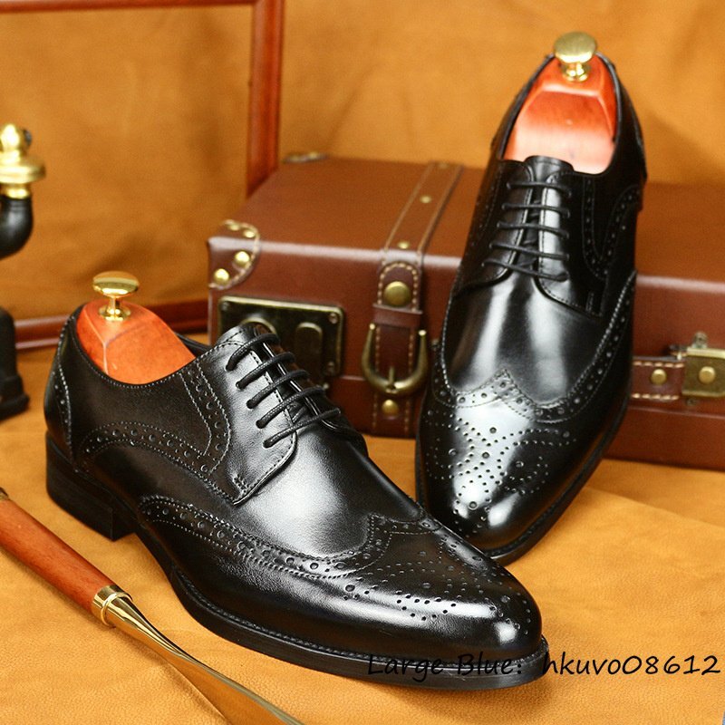 定価10万■超美品 ドレスシューズ 本革 メンズシューズ 職人手作り ビジネスシューズ 紳士靴 革靴 本牛革 レザーシューズ ブラック 24.5cm