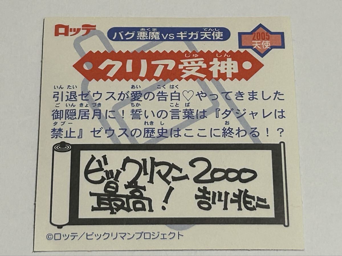 ビックリマン2000発売当時、自身で購入したチョコから出たシールですので、1オーナー品です。20年以上経過して現存数も減り、良い状態ではなかなか中古市場に出てこないと思います。