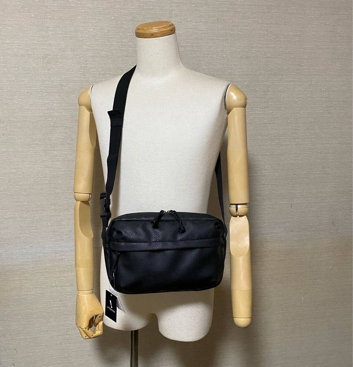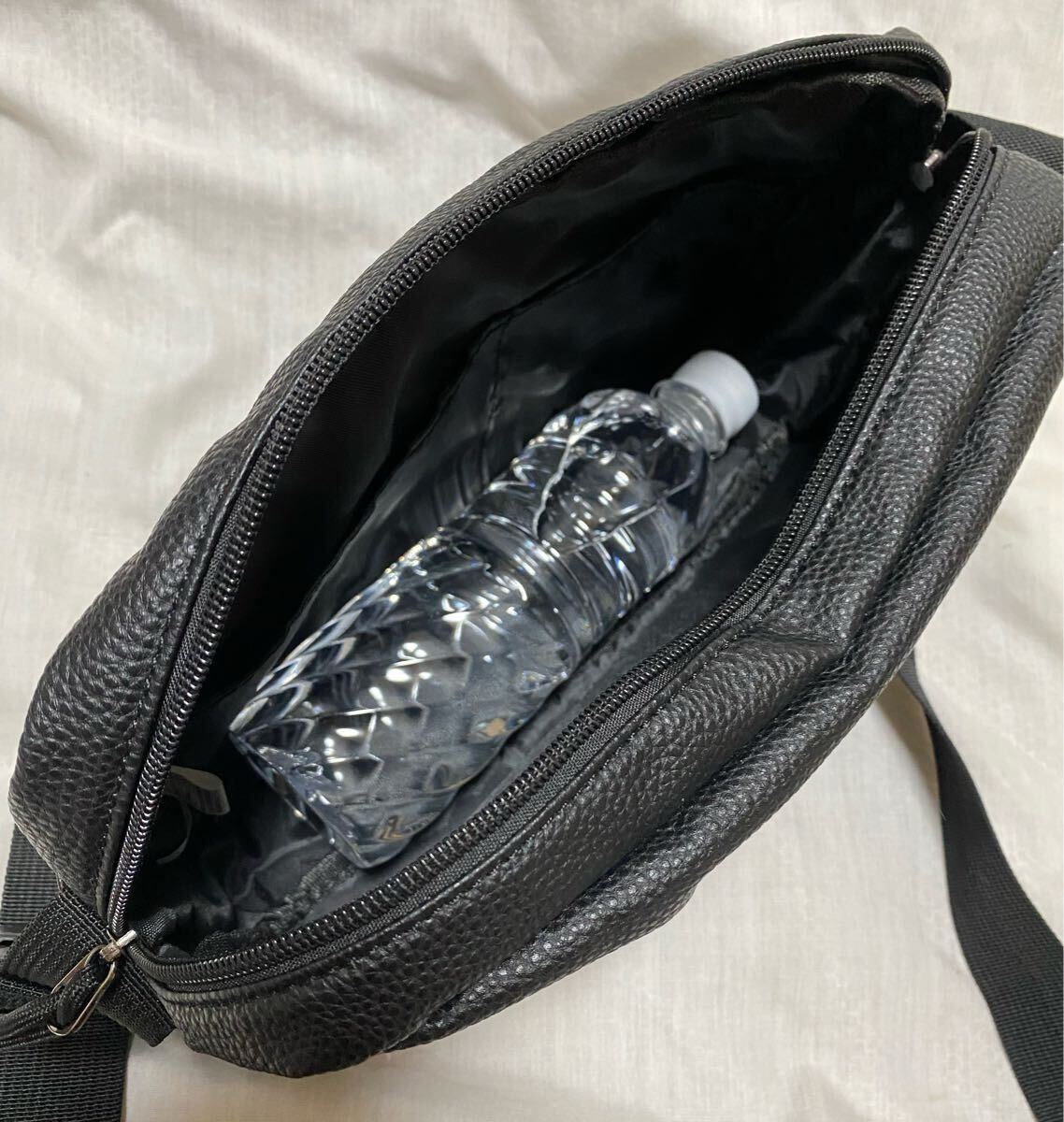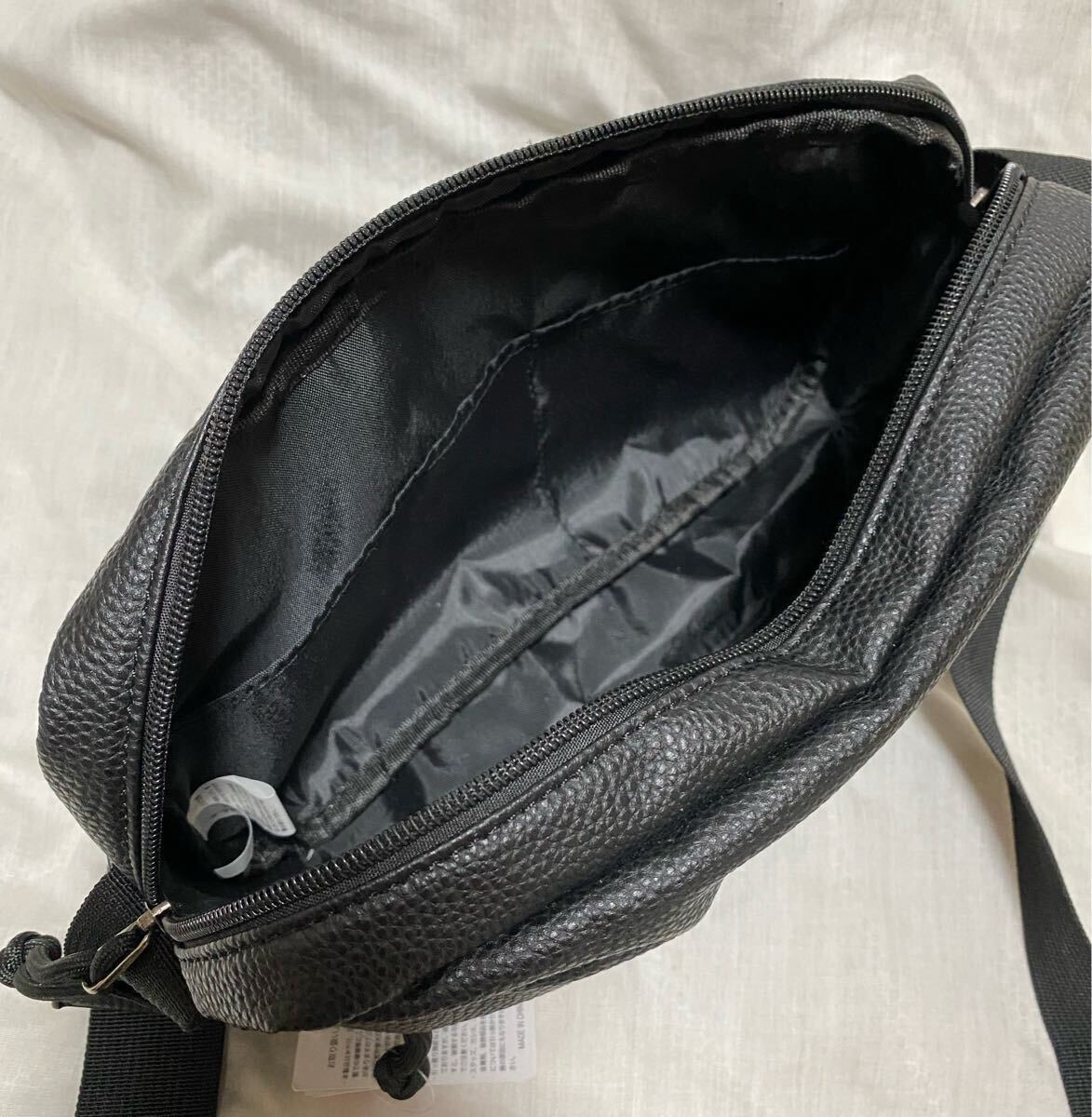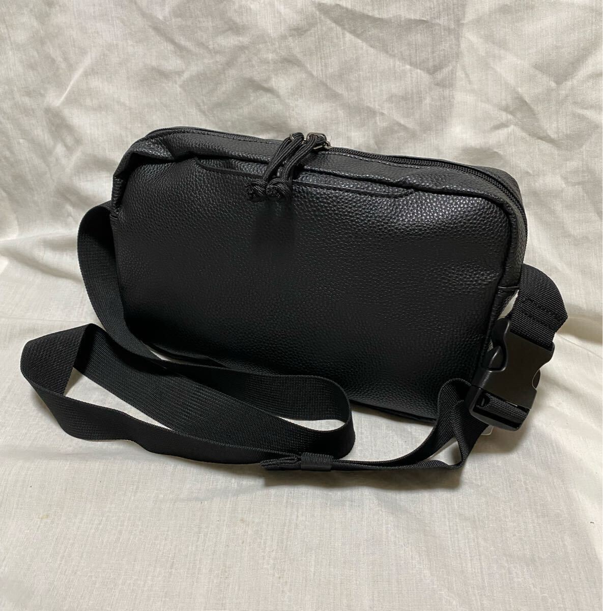 シンプルなブラックレザー調のショルダー。