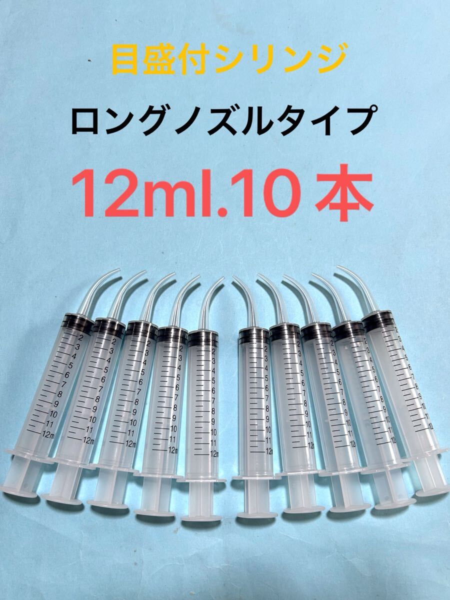 目盛付シリンジ12ml(ロングカーブノズルタイプ)新品10本です。