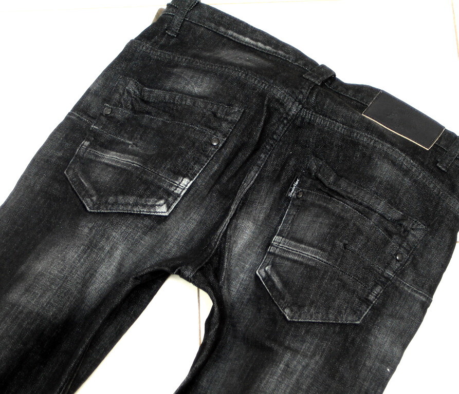 新品 L 2.7万 トルネードマート パンツ ムラブリーチ リジット テーパード クロップド デニム 黒 017