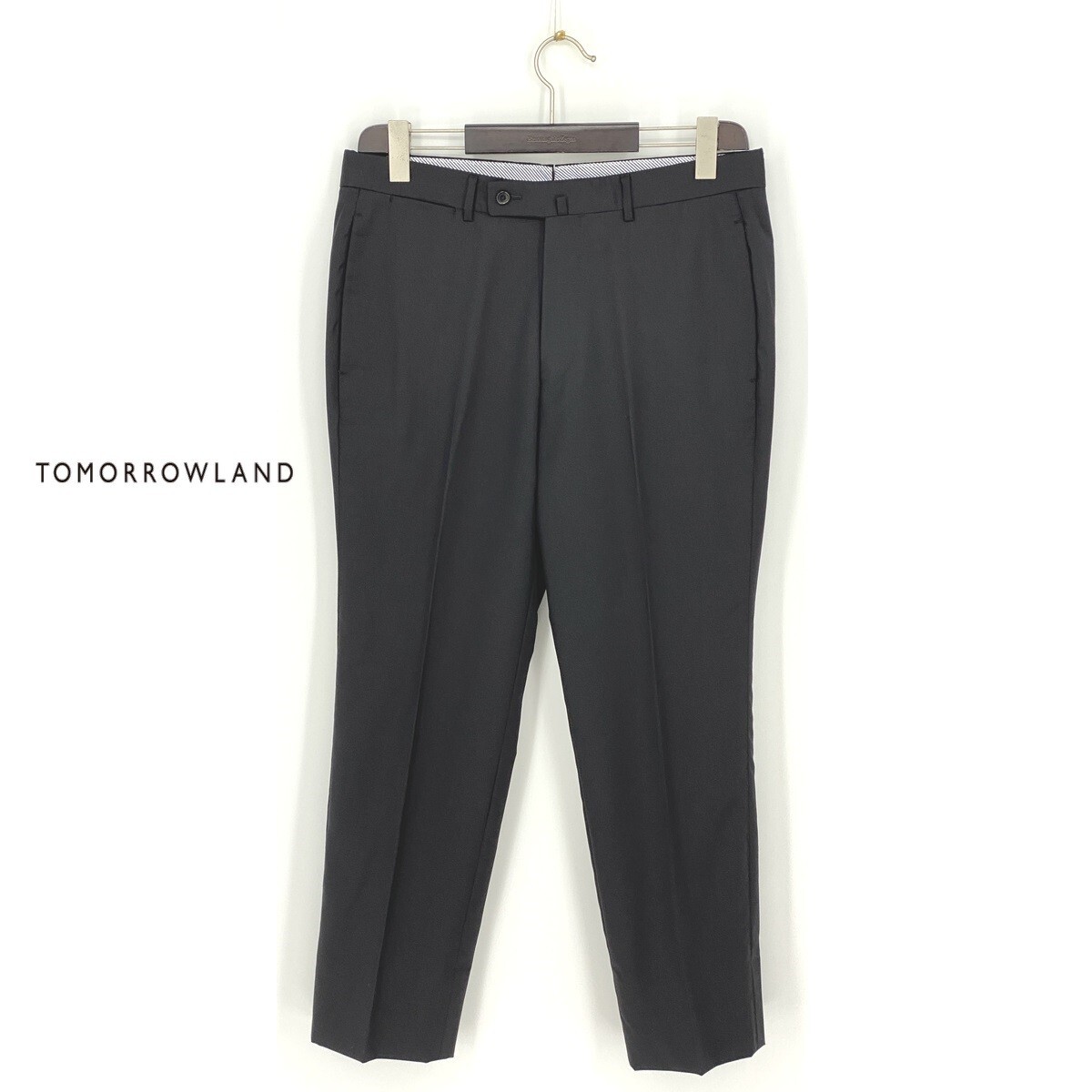 B0430/極美品 TOMORROWLAND トゥモローランド ウール 無地 テーパード スラックス パンツ トラウザーズ 48 L 黒 メンズ スーツ用 ビジネス