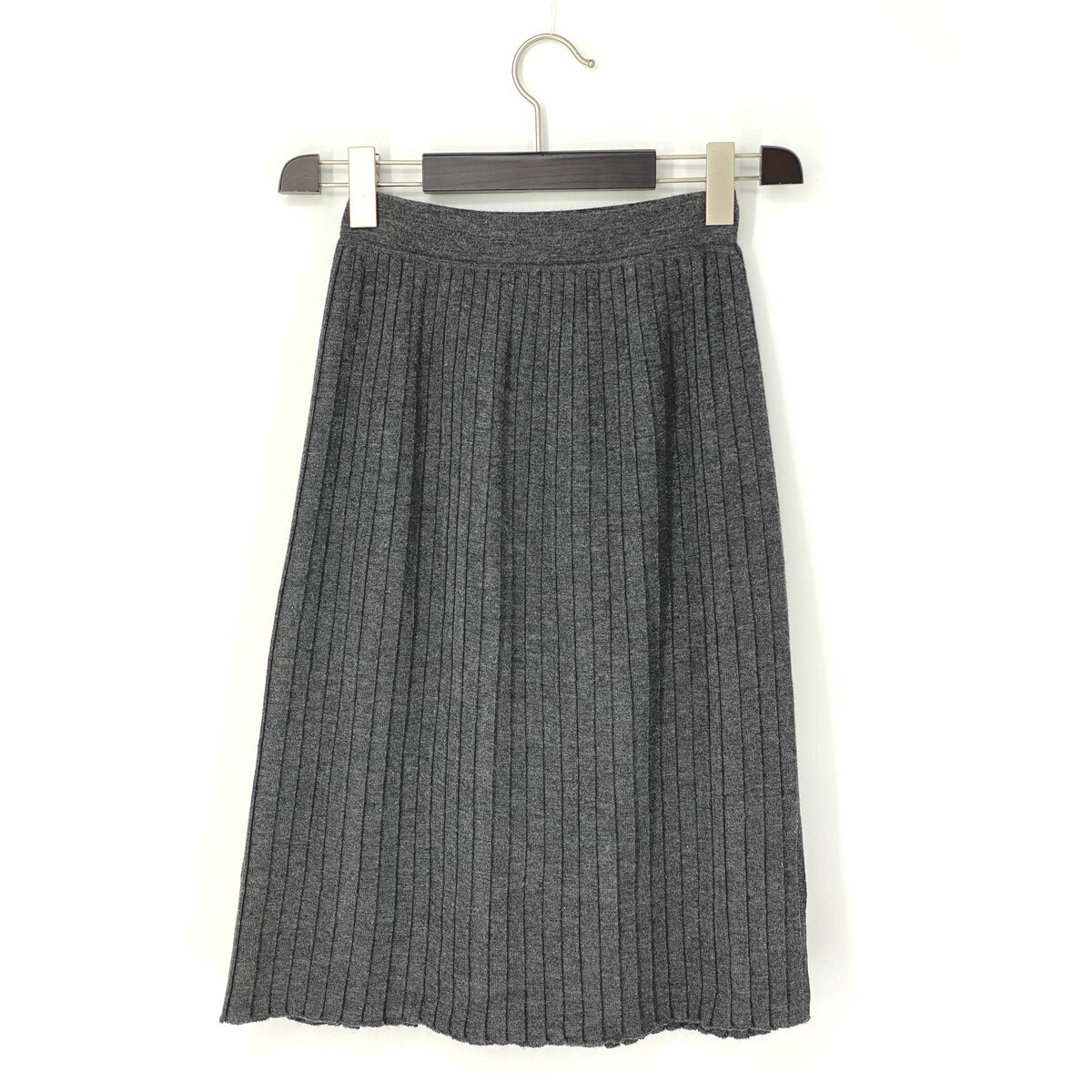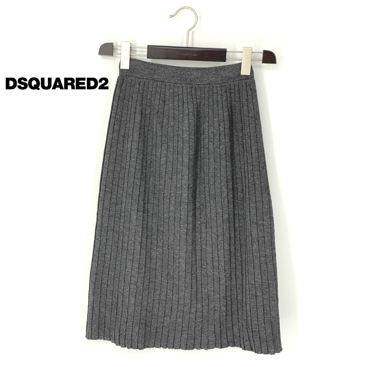 A7150/極美品 春夏 DSQUARED2 ディースクエアード ウール シルク イージー フレア リブ ロング 膝丈 ミモレ丈 スカート XS 灰色/レディース