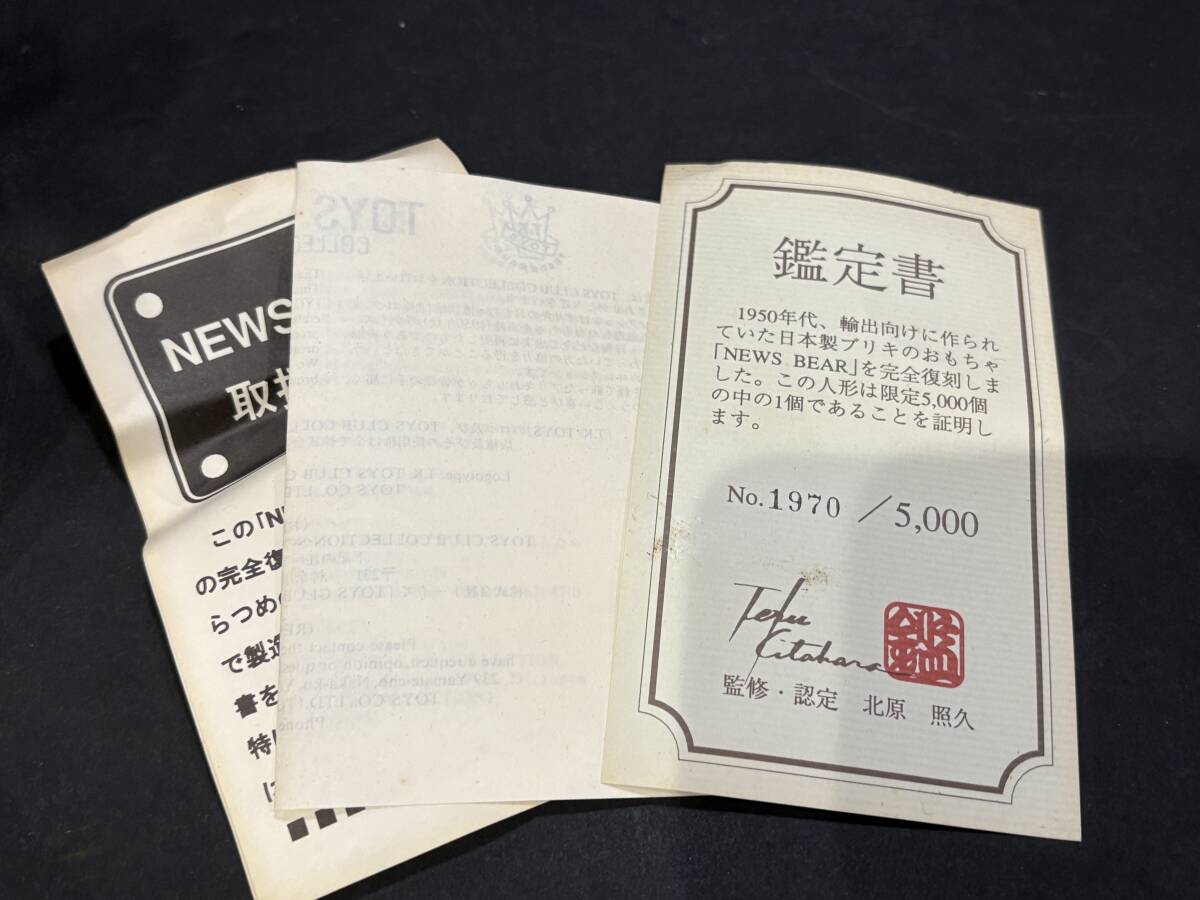 完全復刻版 ブリキ WIND-UP NEWS-CUB NEWS BEAR ゼンマイ式クマの人形 鑑定書/外箱付き 北原照久 5000個限定 日本製 現状品 AJ016060
