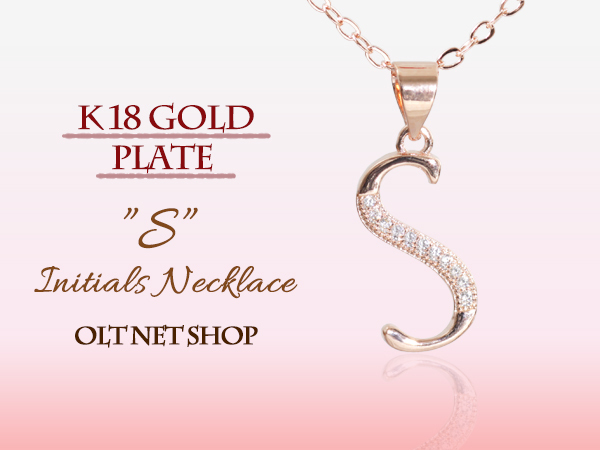 S イニシャル ネックレス レディース ピンクゴールド 18金 18kコーティング 英語 頭文字 / K18GP CZダイヤ 【 S 】イニシャルネックレス