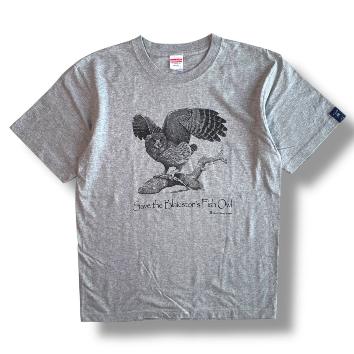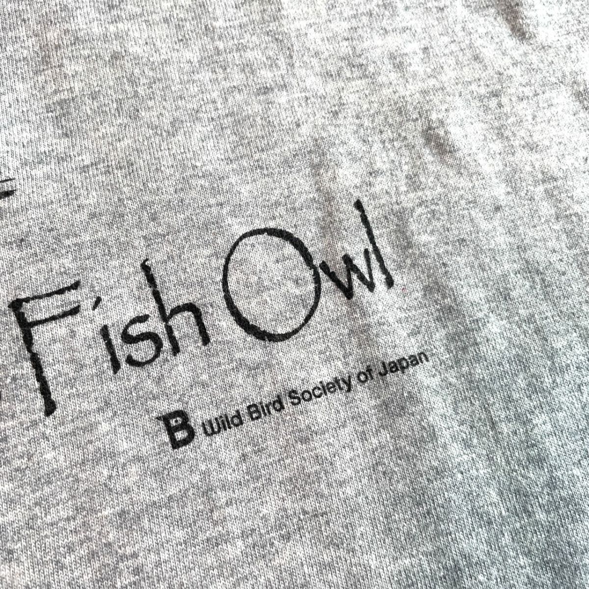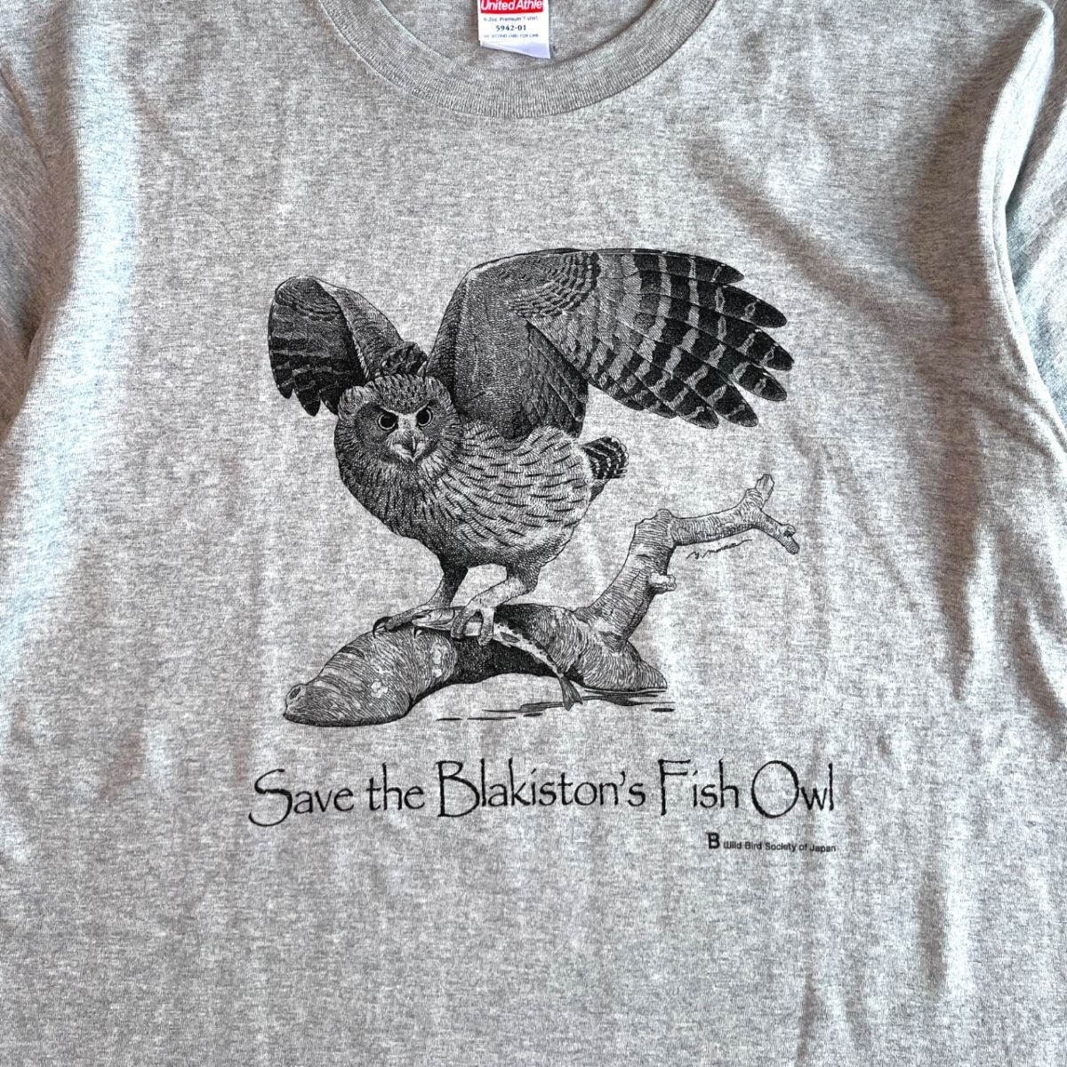 国内正規品★日本野鳥の会 千人の森 10周年記念 シマフクロウ プリント 半袖 Tシャツ グレー Lサイズ アニマルプリント Owl 梟 動物 古着