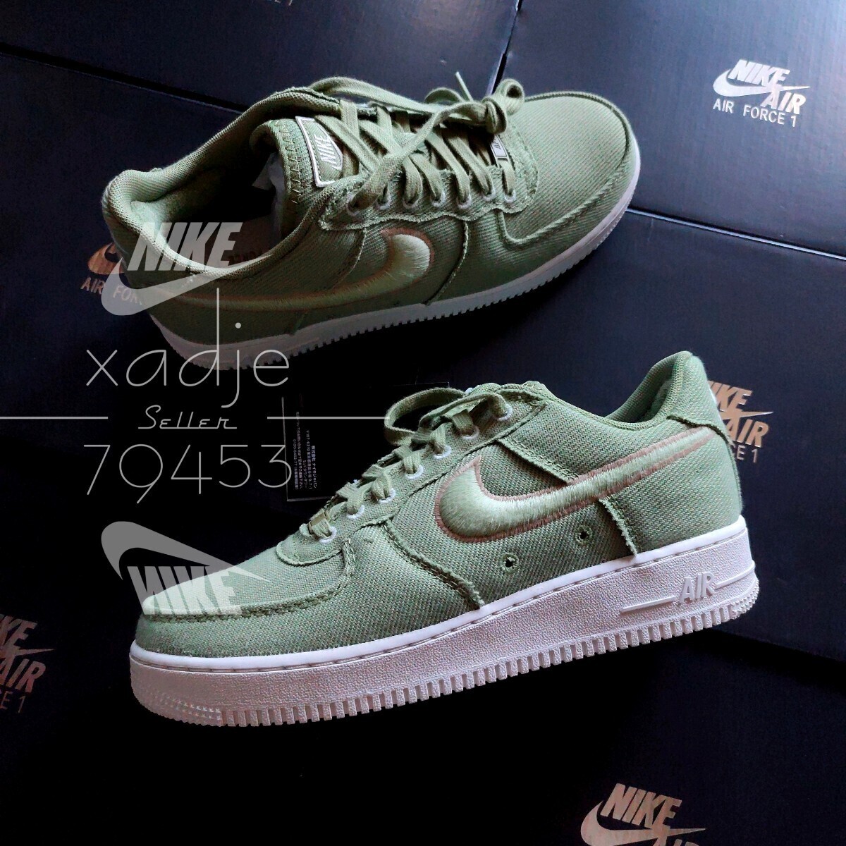 新品 正規品 NIKE ナイキ AIR FORCE1 LOW エアフォース1 ロー オリーブ カーキ 定価15950円 26.5cm US8.5 キャンバス 刺繍 デュブレ 箱付き