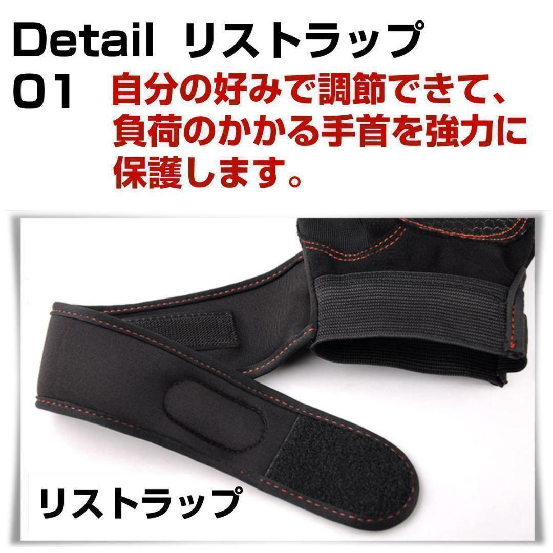 ・汗のかきやすい手のひら、手の甲の部分に空気穴を開けているので、汗による蒸れを抑えられます。汗による不快感を軽減させるので、集中してトレーニングすることができます。通気性・快適性・防臭など様々な機能性を兼ね備えた本格的トレーニンググローブでございます。長さ30cmのリストラップ付きなので、手首をしっかり固定できます。手首を固定することで、手首への負担の軽減や怪我の防止に