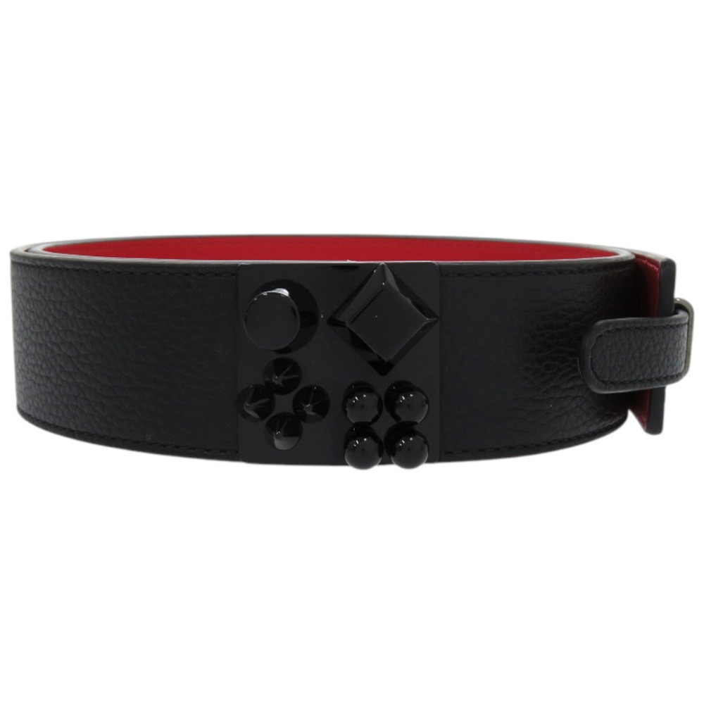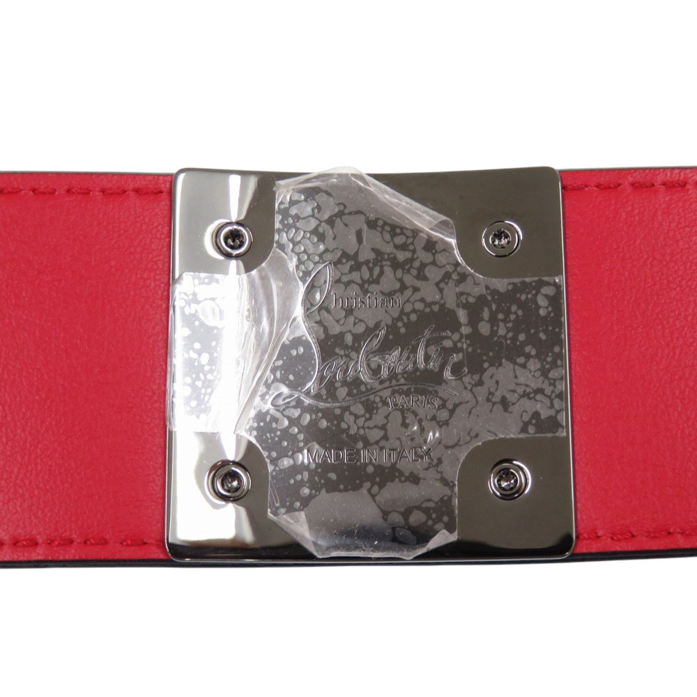 未使用品 クリスチャンルブタン ウエストベルト スタッズ レザー ブラック シルバー金具 黒 赤ベルト 1495 Christian Louboutin