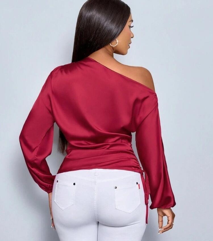 M1211 カットソーレディース● 着心地抜群 20代30代40代 ●大活躍  長袖  光沢  red