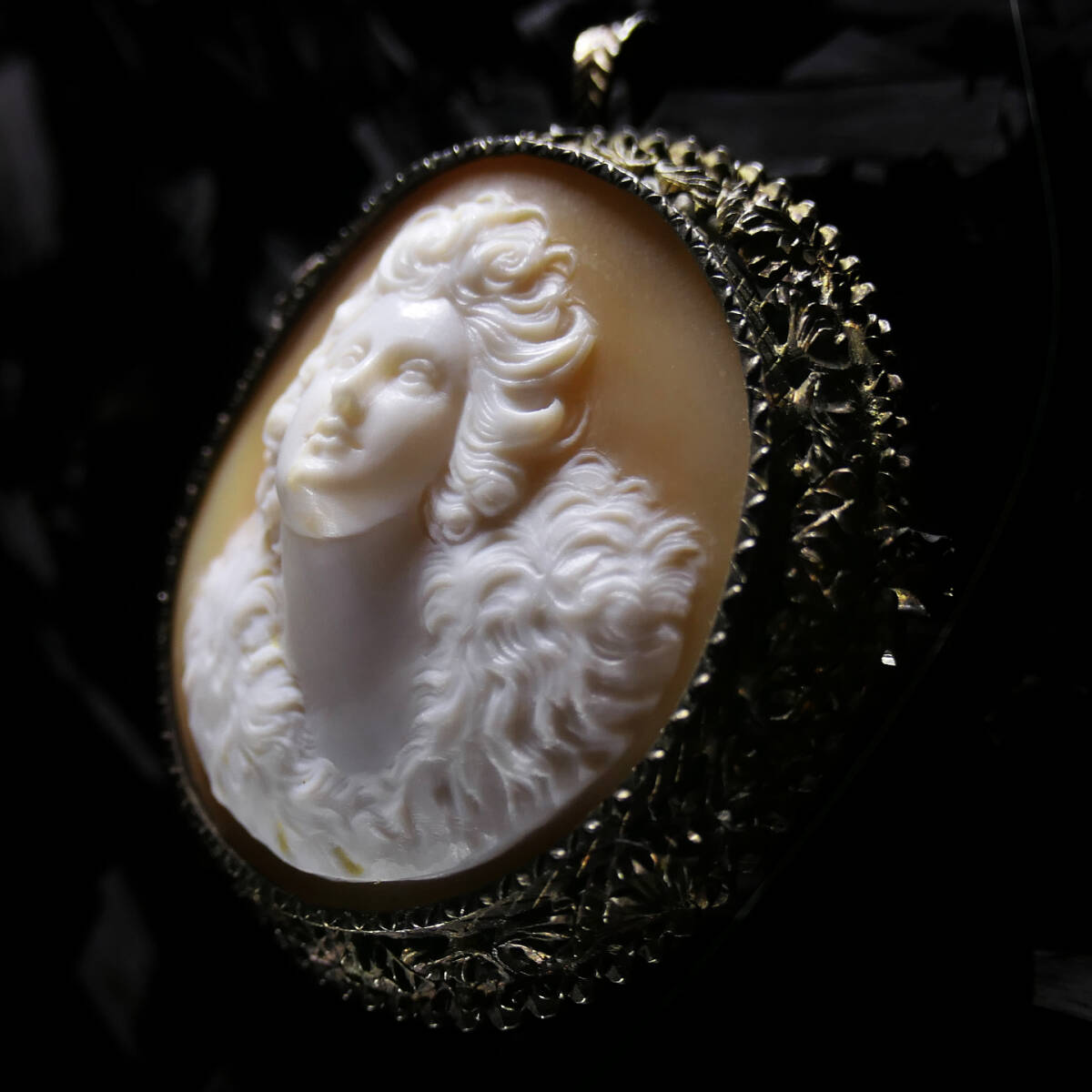 作品としては同時代のマリア同様にノトの技がよく光り、特に毛皮の外套に見える繊細な陰影と白色が地色に溶け込むような貝の濃淡からなされる表現は、ノト作としてはもちろんカメオ史においても20世紀前半までは見ることができなかったものでした。