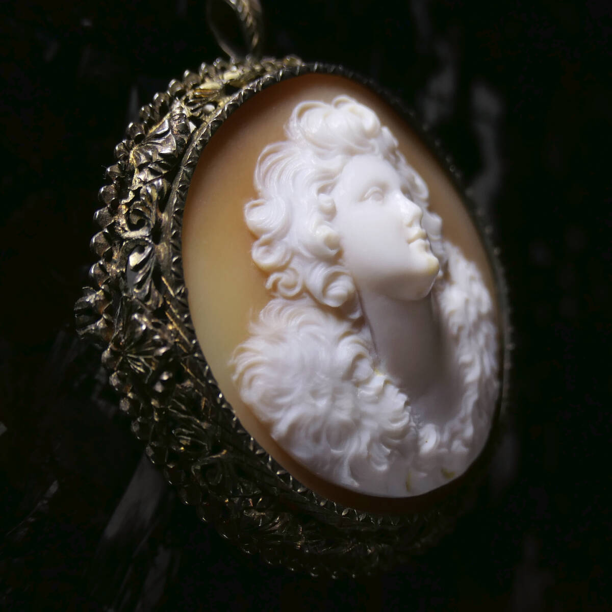 本作は流通の安定した現代の基準から見れば色のいい貝とはいえないものの、この時代のサルドニクスの貴重さを鑑みれば十分特別な背景を持った作品であることが察せられます。