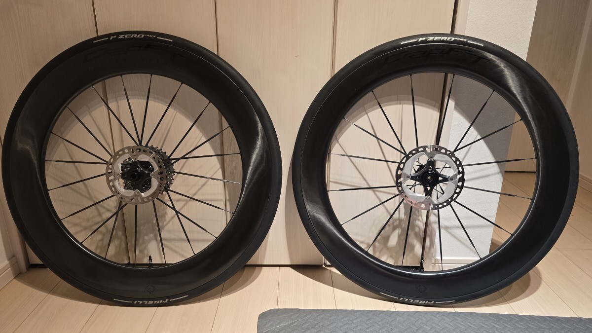 フロント65mm、リア75mmというハイトながら、前後重量1430gという超軽量仕様のホイールです。