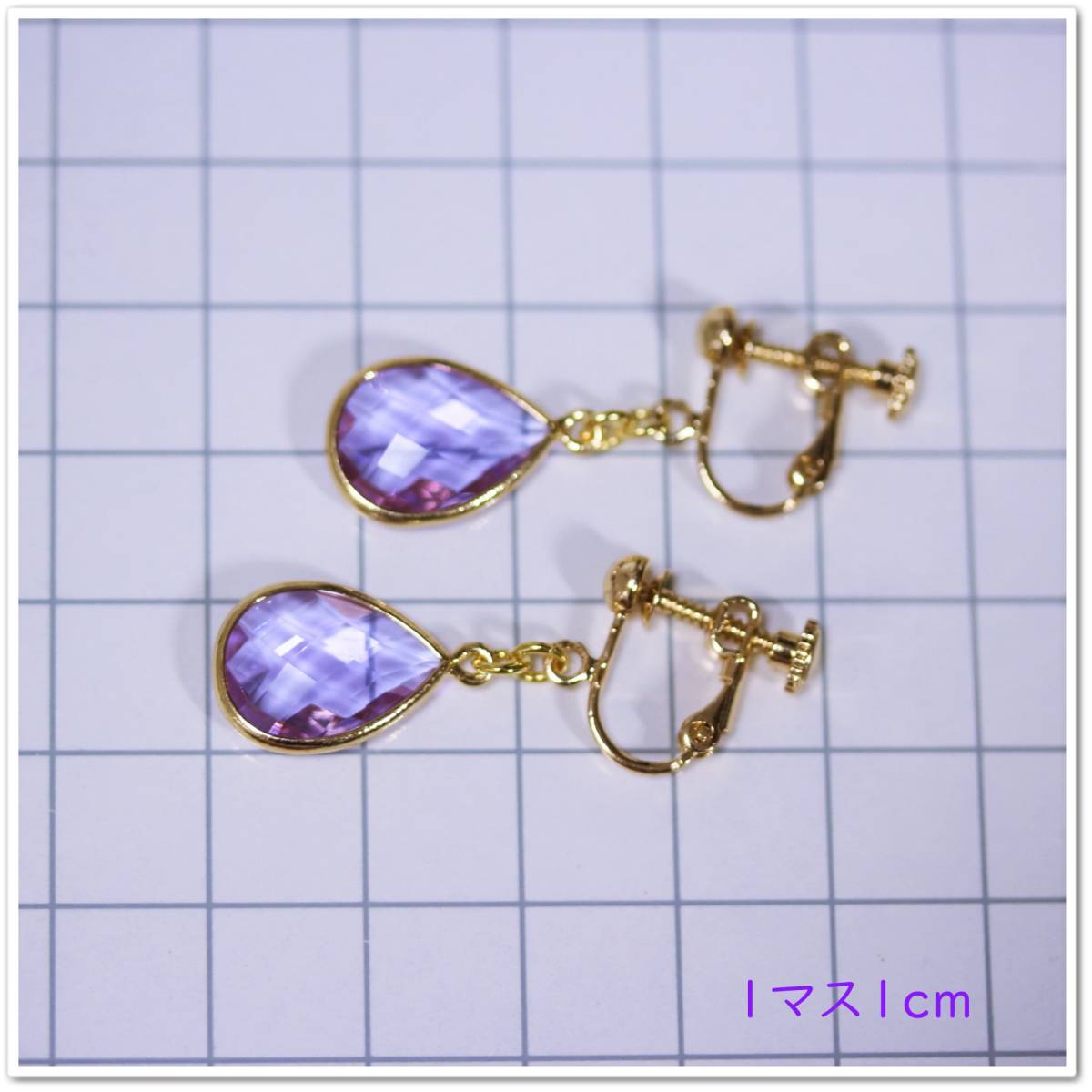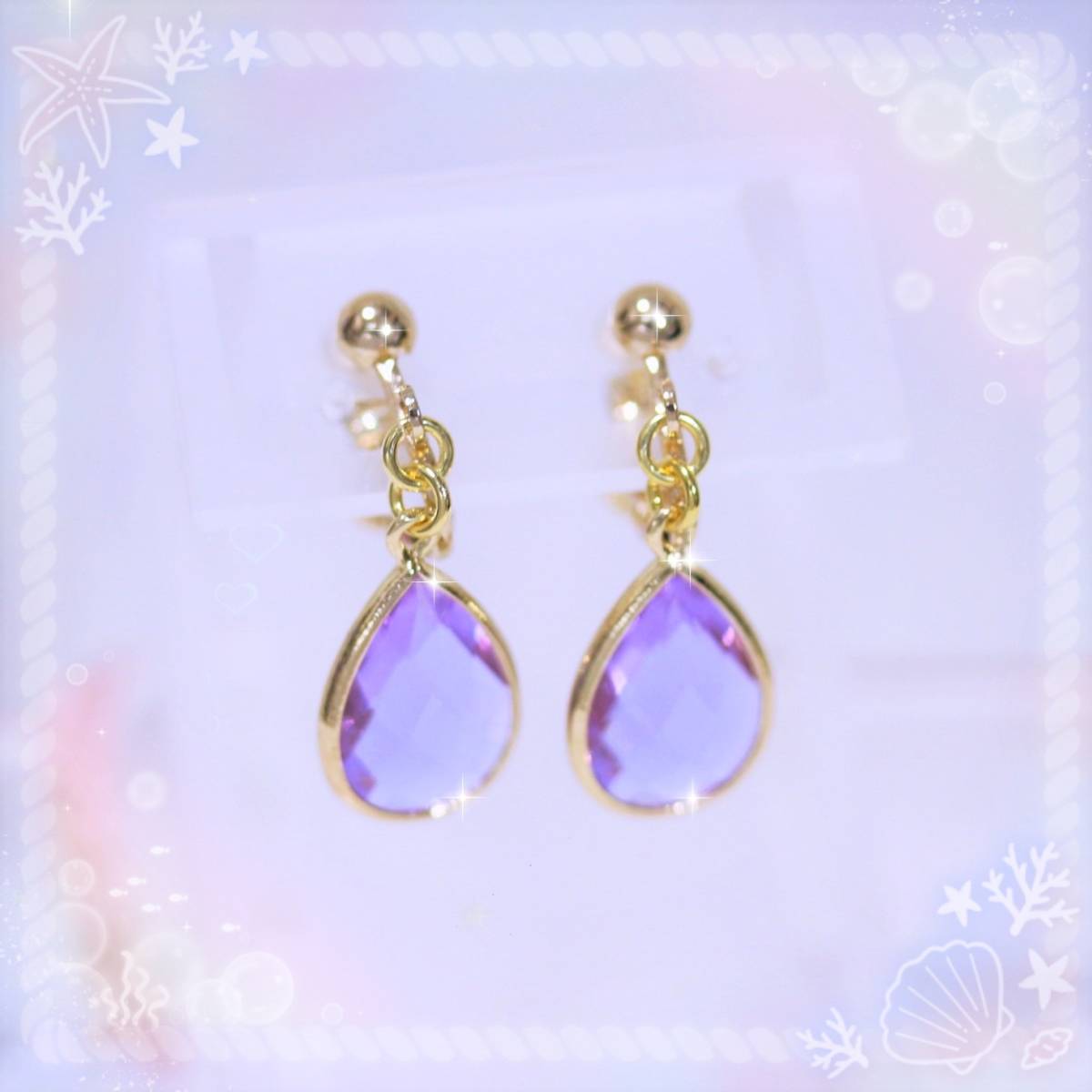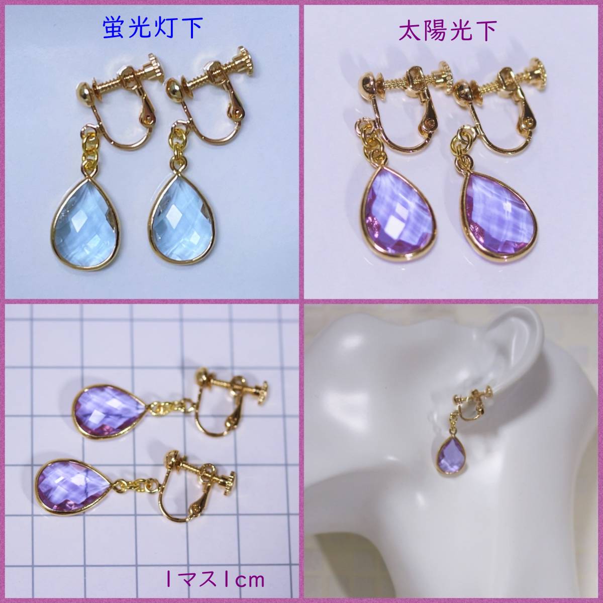 E7732/色が変わる アレキサンドライトカラー 多面カットガラス ドロップイヤリング 雫型 しずく シャネルストーン ピアス 樹脂 変更可