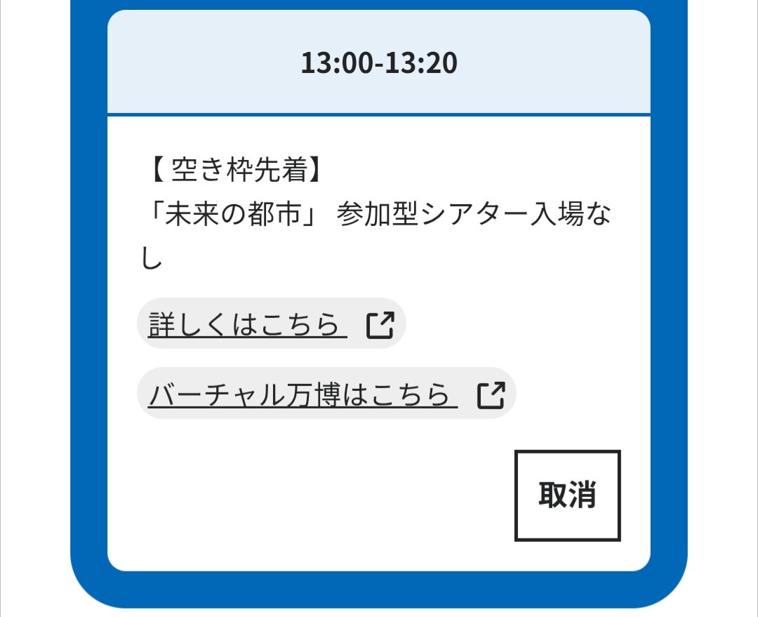 13:00〜13:20「未来の都市」参加型シアター入場なし 予約済