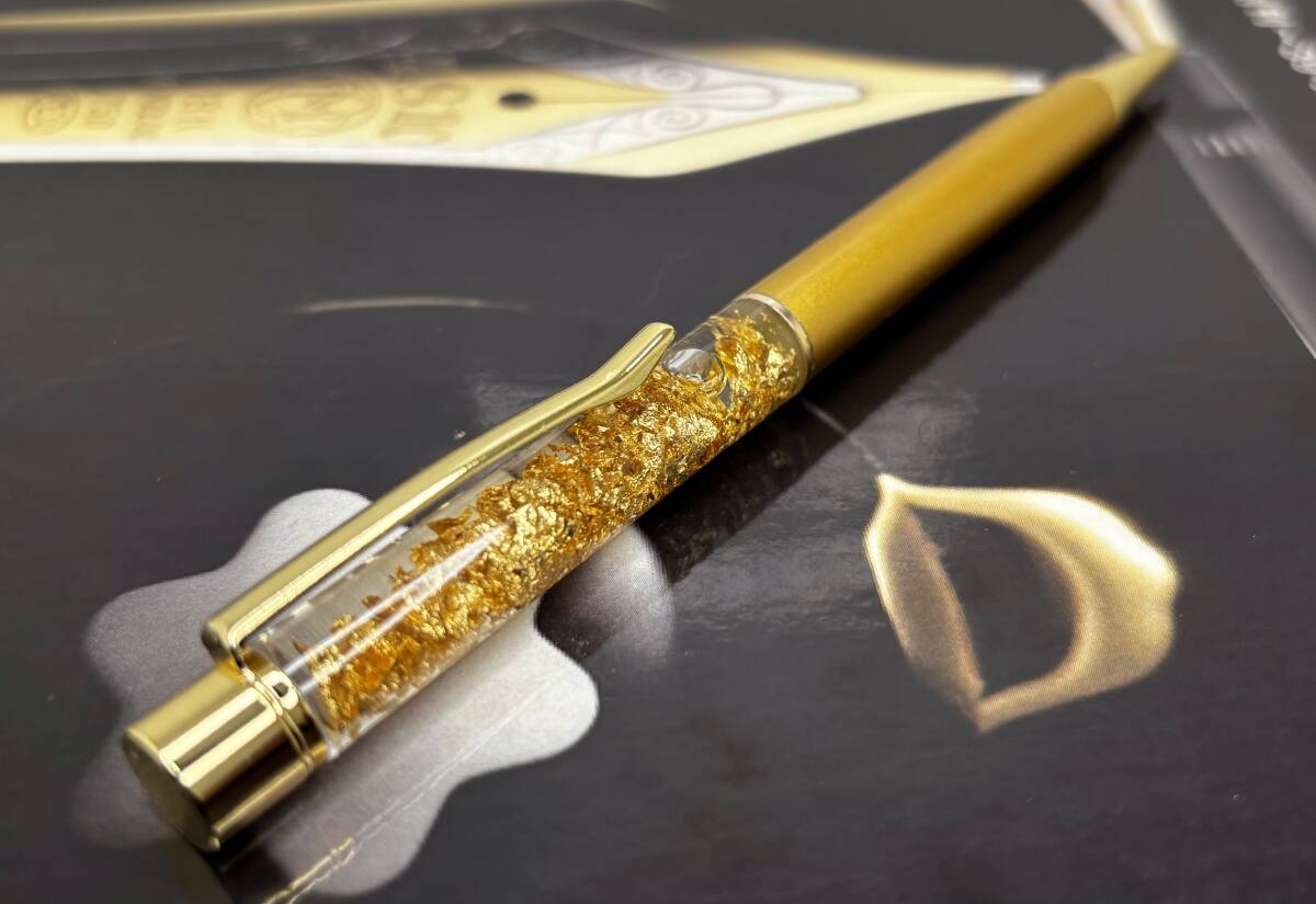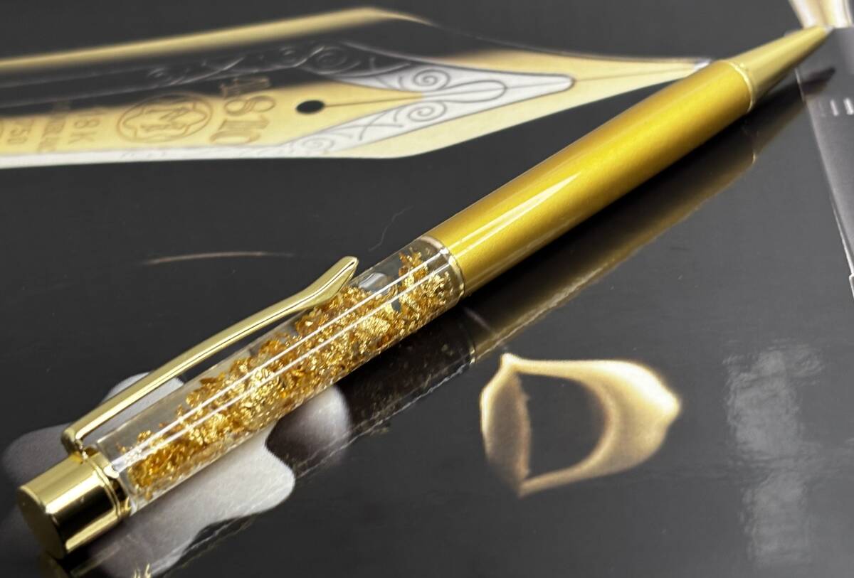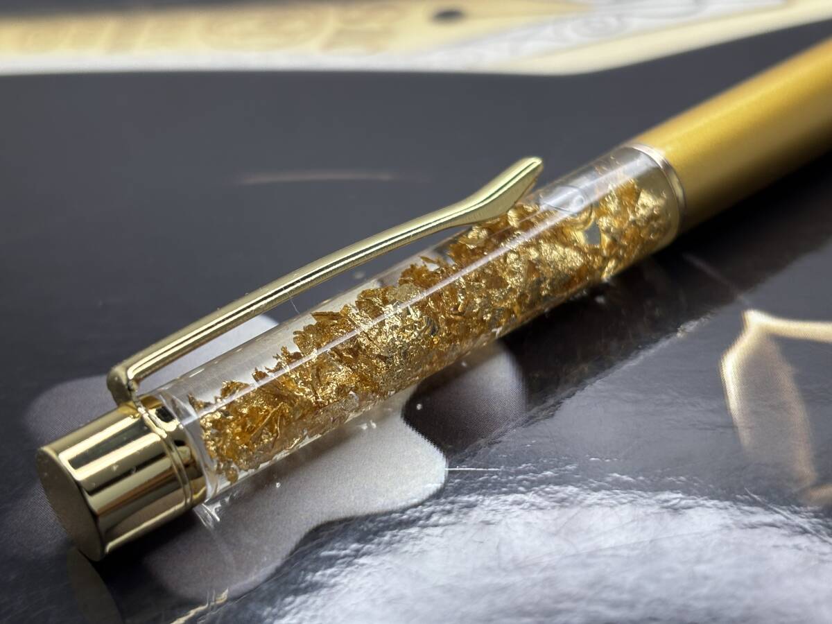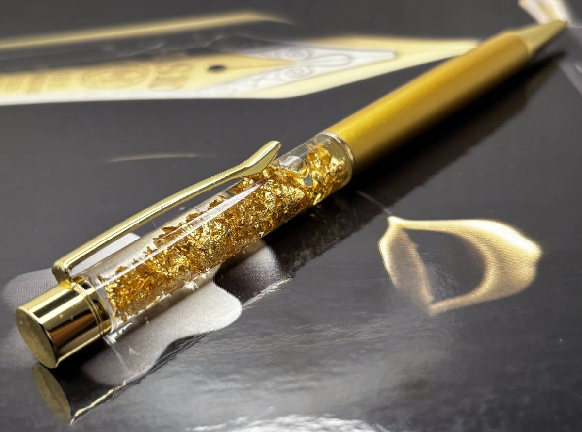 ★金運を呼ぶ!ゴールドダスト・ボールペン★24K Gold powder and gold dust in Oil★クリアトップ部内の24Kのゴールドダストがオイル漬けでキラキラと動くボールペンです★ゴールドプレートのペン先とクリップ&テールエンド★鮮やかなゴールド・カラーのパウダーの効いた軸ボデイ★ ★デザインが似たタイプのスワロフスキーのクリスタルシリーズ・ボールペンが爆発的に売れて、 次期流行モデルとして金運降臨モデルとして世界中で人気の高いモデルです★ ★交換用の適合インク・リフィル: 国産のジェットストリーム系インクリフィルと国際規格4C又はSE-7というタイプが装着できます為、国産のトンボ・シャープ・ゼブラ・三菱などの4CやSE-7タイプや海外ブランドのインクリフィルが装着できますので安価で購入出来る交換インクで1本70円前後から国産インクが購入出来ます、インクに困らないという利点があります、海外メーカーのモンブラン他・ロッドリング・シュナイダー・ガランダッシュやラミー他のメーカーのインクも共用できます、インクのカラーバリエーションも100色以上あり、替え芯の購入は最寄りの大型文具店、東急ハンズ、Loft、ユザワヤ、百貨店文具コーナーなど他にも、インターネットショッピング・楽天市場・Yahooショッピングなど他ののLOHACOやペンハウスなどの通販でも容易に入手が可能です★※状態は画像の通り美品ですが、一応一度人の手に渡ったUSED品として微細なスレや傷などは個人のUSED品長期の自宅保管品としてご了承ください※★※他でもお話ししています、完売の際にはご了承ください※★ #スワロフスキー #ジェットストリーム #金運 #ゴールド ※「即購入OKです!」※コメントをせずそのまま購入してもOKです!※ ※『綺麗な状態にして発送します!』※ ※ 最短迅速発送!※《品物が無事にお手元に届きますよう、傷ついたり壊れたりしないよう緩衝材などを用いて大切に保護梱包を施して良好な状態のままお届け出来るよう心がけます》※ ※【最短迅速発送!】※購入した物は1日でも早く手にしたいという購入者様のご要望に出来る限り早々に発送させて頂きます!※欲しいから購入した気持ちに寄り添いご対応させて頂きます!迅速丁寧!を心がけてご対応させていただきます※ ※※ ★※最近品物到着後に受け取り完了の手続きをしない方、忘れる方が増えています、受け取り完了の手続きをしなければ取引が成立しない為、品物受け取り済み・品物が配達済みの場合は到着より24時間以内に(受け取り完了評価)のお手続きをお約束出来る方限定でお願いします、品物が配達済みで品物を入手しているのに、受け取り完了の手続きをしなければ代金は出品者に送金されない為、受取完了手続きは落札者のルール義務違反です※保護梱包を施しパッケージを荷造りして遠くの郵便局まで発送しに行きますことから、品物が届き受け取り後には速やかに受け取り完了の手続きをお願いします※★ ★※購入後24時間以内に取引ナビより連絡いただくか、お取引ナビより購入お手続きや落札者様の発送先詳細の連絡と落札後24時間以内のお支払いお手続きや購入お手続きを出来る方のご入札をお願いします、お約束を守れない方の入札はしないようお願いいたします※★上記のお約束をお守りいただけないルール違反や悪質な方、トラブルを起こす、悪質な連絡や虚偽や妨害、誹謗中傷評価などする方はオークション事務局へ通報させていただきます事をご留意ご了承ください※★ ※受け取り後の返品や交換には対応していません、最近一部パーツの除去や剥ぎ取り、すり替えなどのトラブル防止の為、ご対応をしておりません、購入後、受け取り後の値引き要求や気軽な気持ちでの交換や返品受付の対応は出来ませんのでご留意ご了承ください※