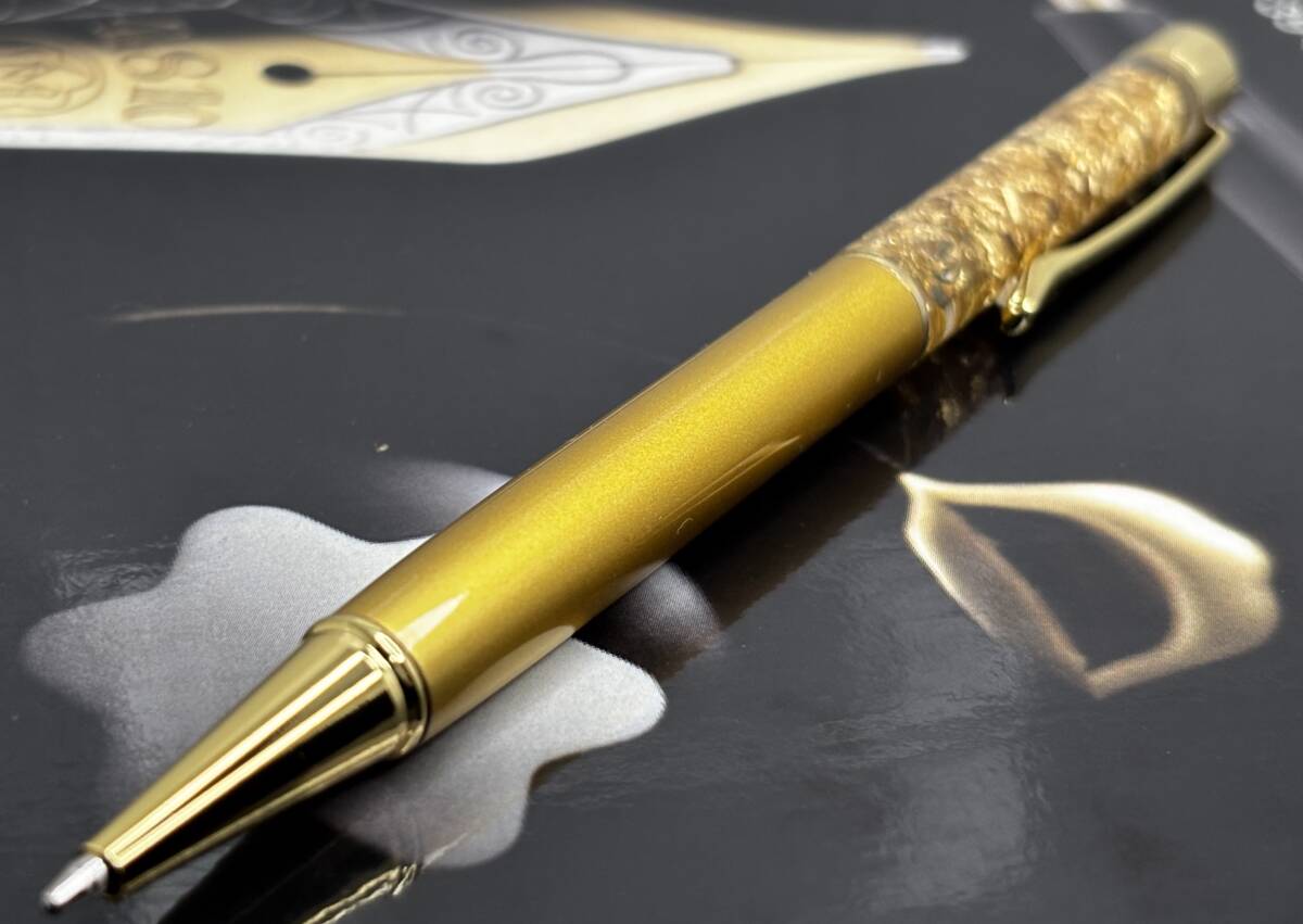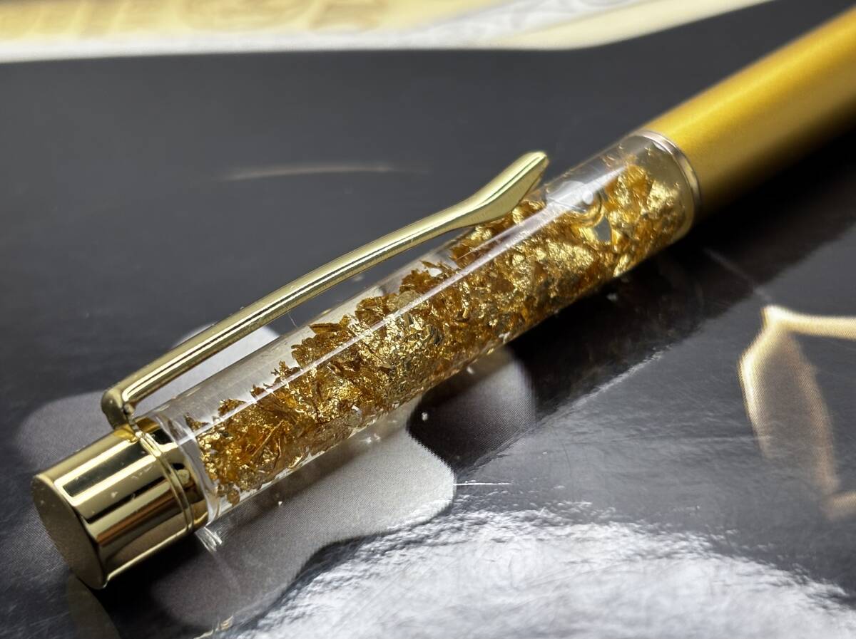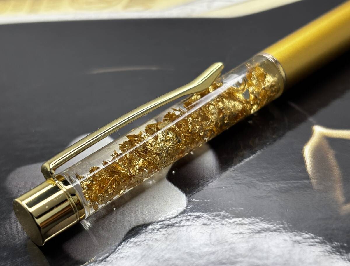 ★金運を呼ぶ!ゴールドダスト・ボールペン★24K Gold powder and gold dust in Oil★クリアトップ部内の24Kのゴールドダストがオイル漬けでキラキラと動くボールペンです★ゴールドプレートのペン先とクリップ&テールエンド★鮮やかなゴールド・カラーのパウダーの効いた軸ボデイ★ ★デザインが似たタイプのスワロフスキーのクリスタルシリーズ・ボールペンが爆発的に売れて、 次期流行モデルとして金運降臨モデルとして世界中で人気の高いモデルです★ ★交換用の適合インク・リフィル: 国産のジェットストリーム系インクリフィルと国際規格4C又はSE-7というタイプが装着できます為、国産のトンボ・シャープ・ゼブラ・三菱などの4CやSE-7タイプや海外ブランドのインクリフィルが装着できますので安価で購入出来る交換インクで1本70円前後から国産インクが購入出来ます、インクに困らないという利点があります、海外メーカーのモンブラン他・ロッドリング・シュナイダー・ガランダッシュやラミー他のメーカーのインクも共用できます、インクのカラーバリエーションも100色以上あり、替え芯の購入は最寄りの大型文具店、東急ハンズ、Loft、ユザワヤ、百貨店文具コーナーなど他にも、インターネットショッピング・楽天市場・Yahooショッピングなど他ののLOHACOやペンハウスなどの通販でも容易に入手が可能です★※状態は画像の通り美品ですが、一応一度人の手に渡ったUSED品として微細なスレや傷などは個人のUSED品長期の自宅保管品としてご了承ください※★※他でもお話ししています、完売の際にはご了承ください※★ #スワロフスキー #ジェットストリーム #金運 #ゴールド ※「即購入OKです!」※コメントをせずそのまま購入してもOKです!※ ※『綺麗な状態にして発送します!』※ ※ 最短迅速発送!※《品物が無事にお手元に届きますよう、傷ついたり壊れたりしないよう緩衝材などを用いて大切に保護梱包を施して良好な状態のままお届け出来るよう心がけます》※ ※【最短迅速発送!】※購入した物は1日でも早く手にしたいという購入者様のご要望に出来る限り早々に発送させて頂きます!※欲しいから購入した気持ちに寄り添いご対応させて頂きます!迅速丁寧!を心がけてご対応させていただきます※ ※※ ★※最近品物到着後に受け取り完了の手続きをしない方、忘れる方が増えています、受け取り完了の手続きをしなければ取引が成立しない為、品物受け取り済み・品物が配達済みの場合は到着より24時間以内に(受け取り完了評価)のお手続きをお約束出来る方限定でお願いします、品物が配達済みで品物を入手しているのに、受け取り完了の手続きをしなければ代金は出品者に送金されない為、受取完了手続きは落札者のルール義務違反です※保護梱包を施しパッケージを荷造りして遠くの郵便局まで発送しに行きますことから、品物が届き受け取り後には速やかに受け取り完了の手続きをお願いします※★ ★※購入後24時間以内に取引ナビより連絡いただくか、お取引ナビより購入お手続きや落札者様の発送先詳細の連絡と落札後24時間以内のお支払いお手続きや購入お手続きを出来る方のご入札をお願いします、お約束を守れない方の入札はしないようお願いいたします※★上記のお約束をお守りいただけないルール違反や悪質な方、トラブルを起こす、悪質な連絡や虚偽や妨害、誹謗中傷評価などする方はオークション事務局へ通報させていただきます事をご留意ご了承ください※★ ※受け取り後の返品や交換には対応していません、最近一部パーツの除去や剥ぎ取り、すり替えなどのトラブル防止の為、ご対応をしておりません、購入後、受け取り後の値引き要求や気軽な気持ちでの交換や返品受付の対応は出来ませんのでご留意ご了承ください※