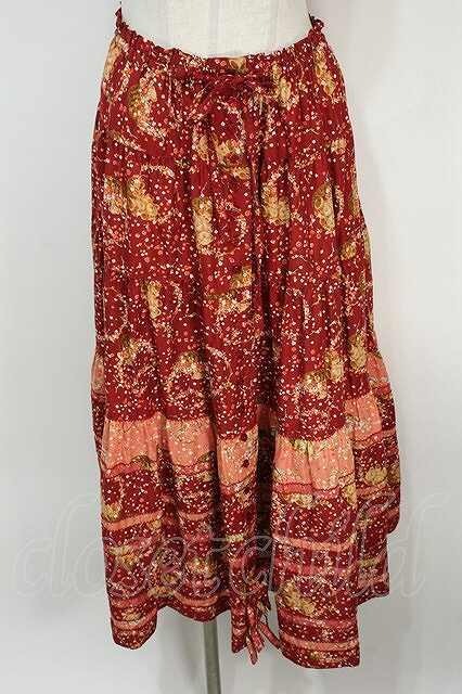 PINK HOUSE / Flower Picnic プリントパッチワークスカート 赤 S-24-06-24-087-LO-SK-UT-ZI