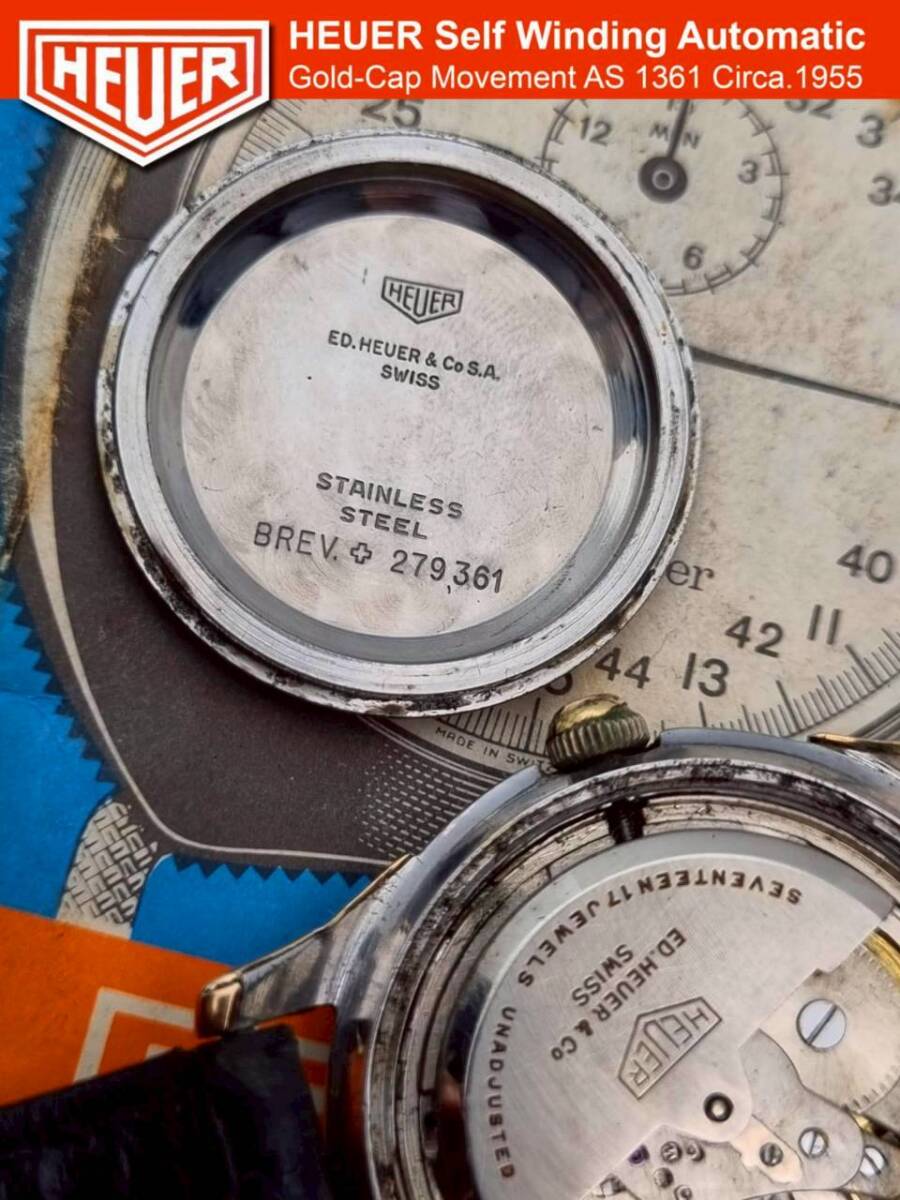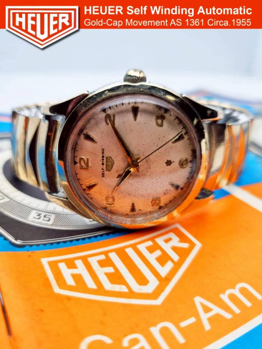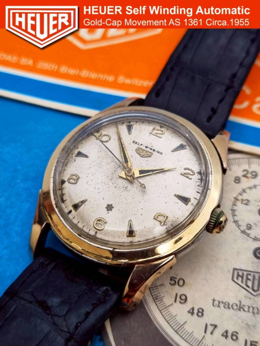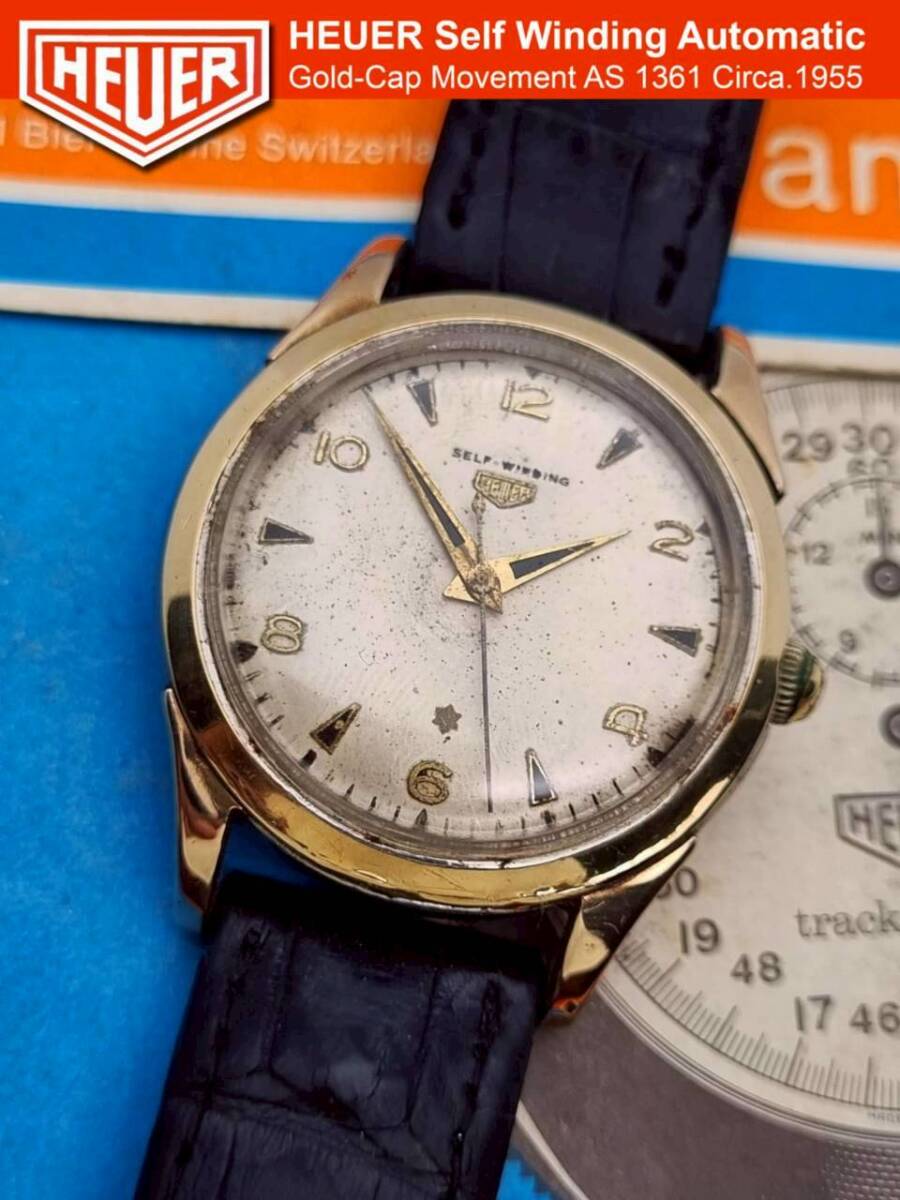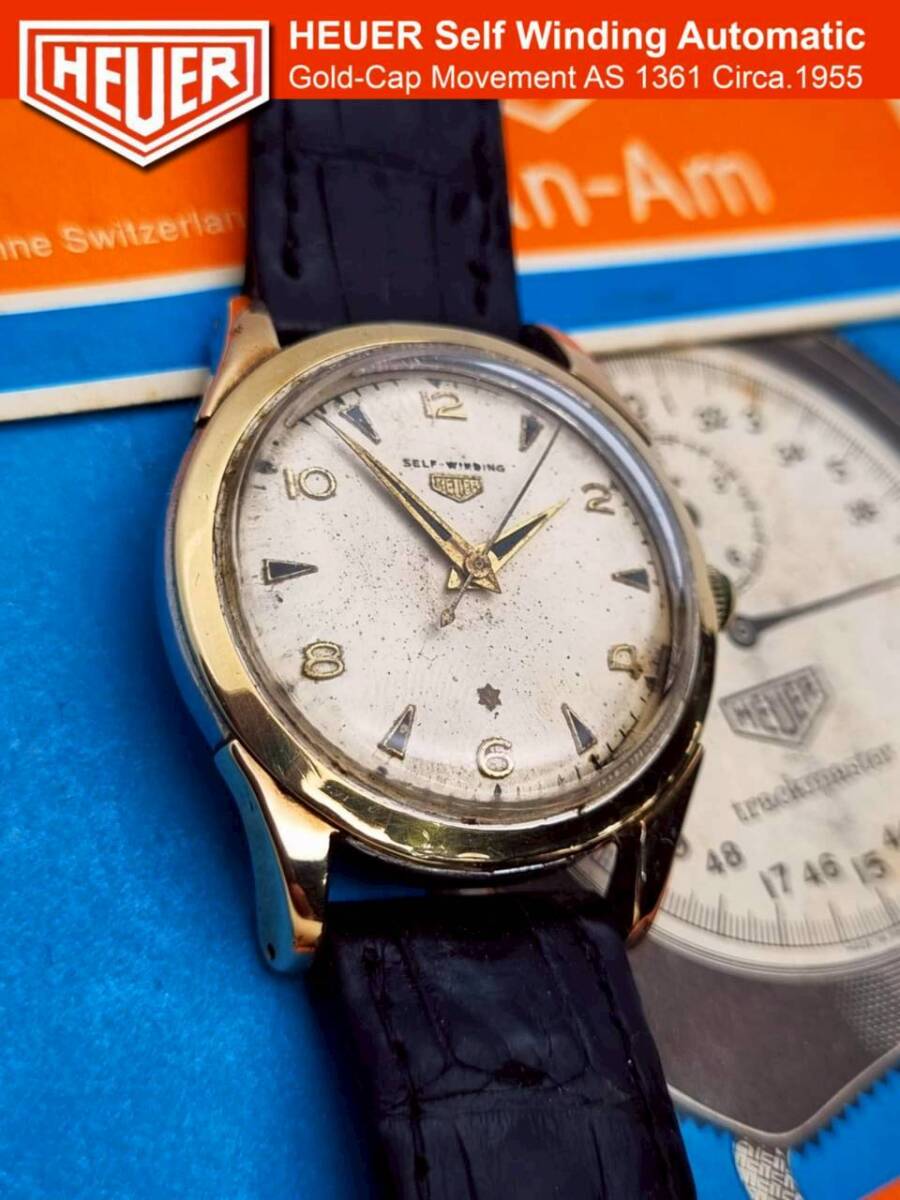 • 【動作良好】HEUER ホイヤー 自動巻き ゴールドキャップ 1955年頃 AS 1361 アンティーク腕時計