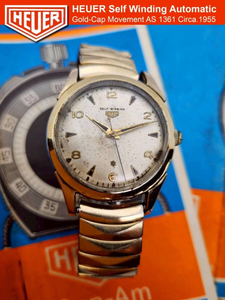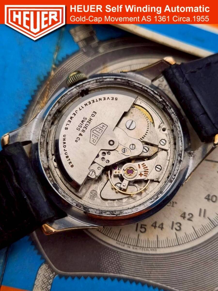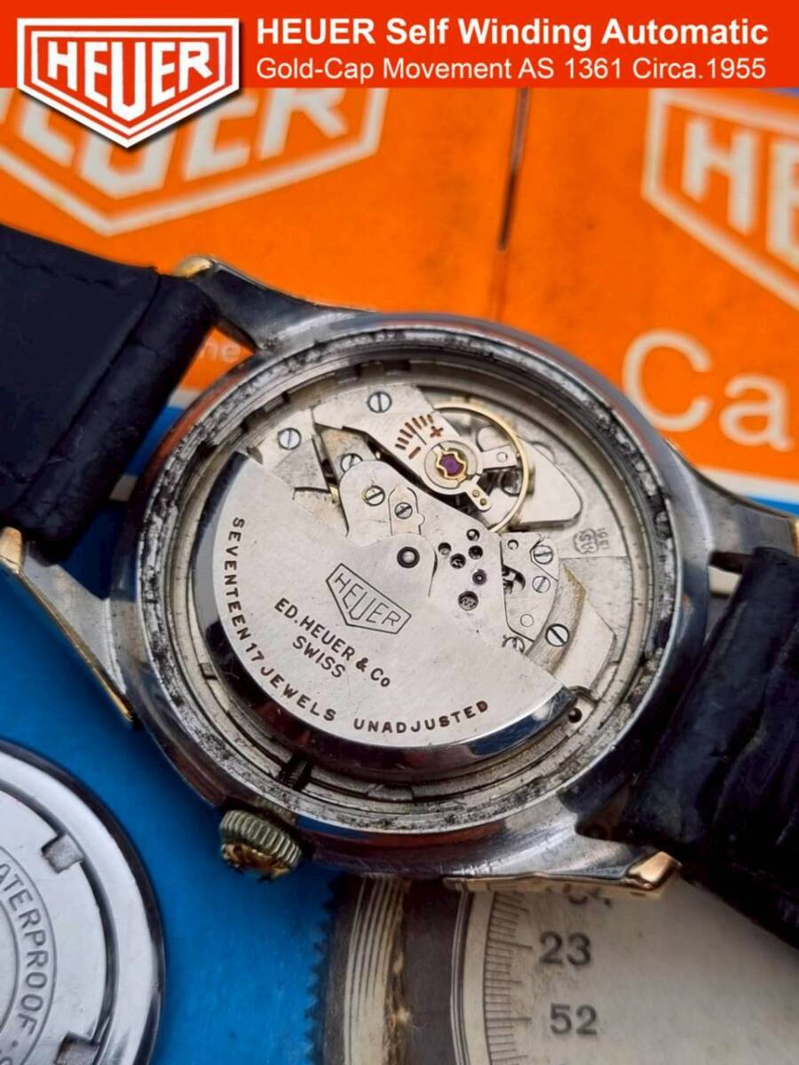 C20.【動作良好】HEUER ホイヤー 自動巻き ゴールドキャップ 1955年頃 AS 1361 アンティーク腕時計