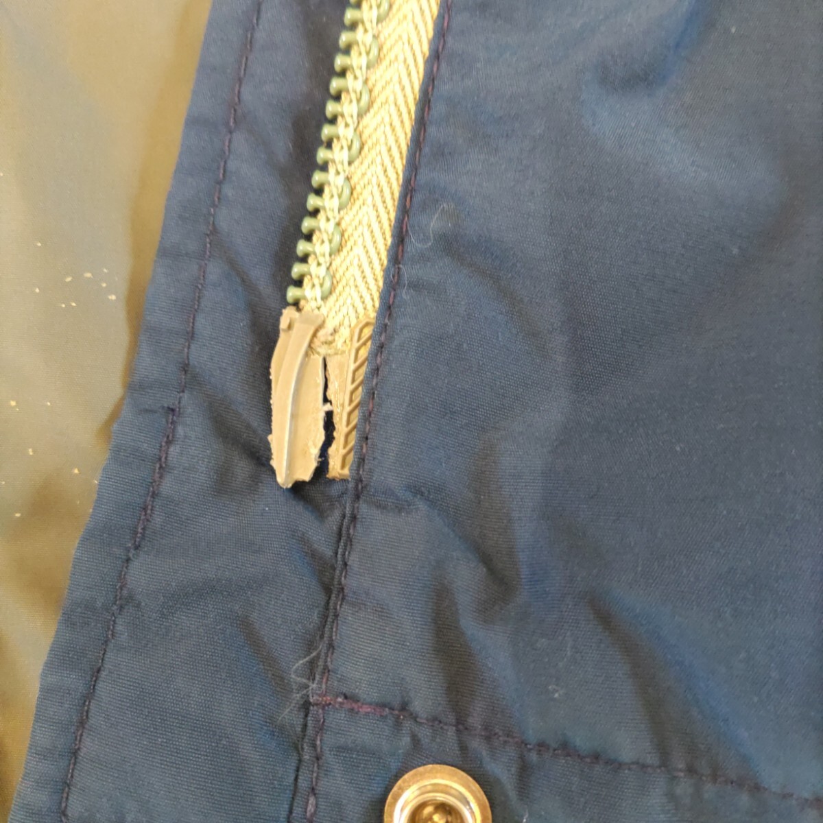 ジップは裂けがあり、スナップボタンをご利用ください。