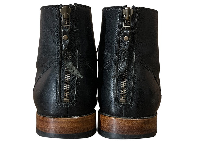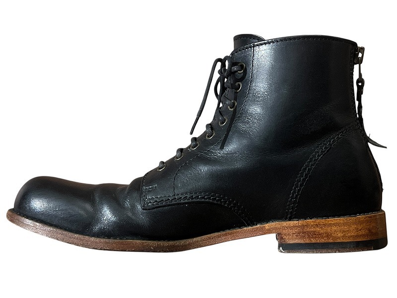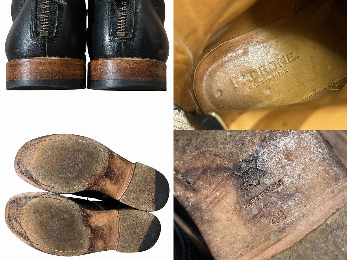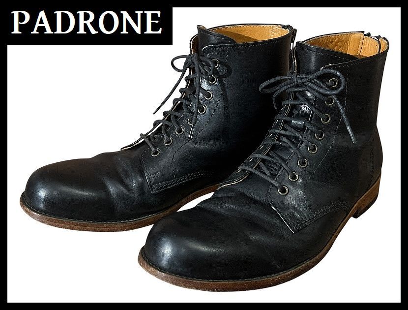 送無 名作 定価37,400円 PADRONE パドローネ ANTONIO LACE UP BOOTS with BACK ZIP バックジップ レースアップ レザー ブーツ 黒 約27.0