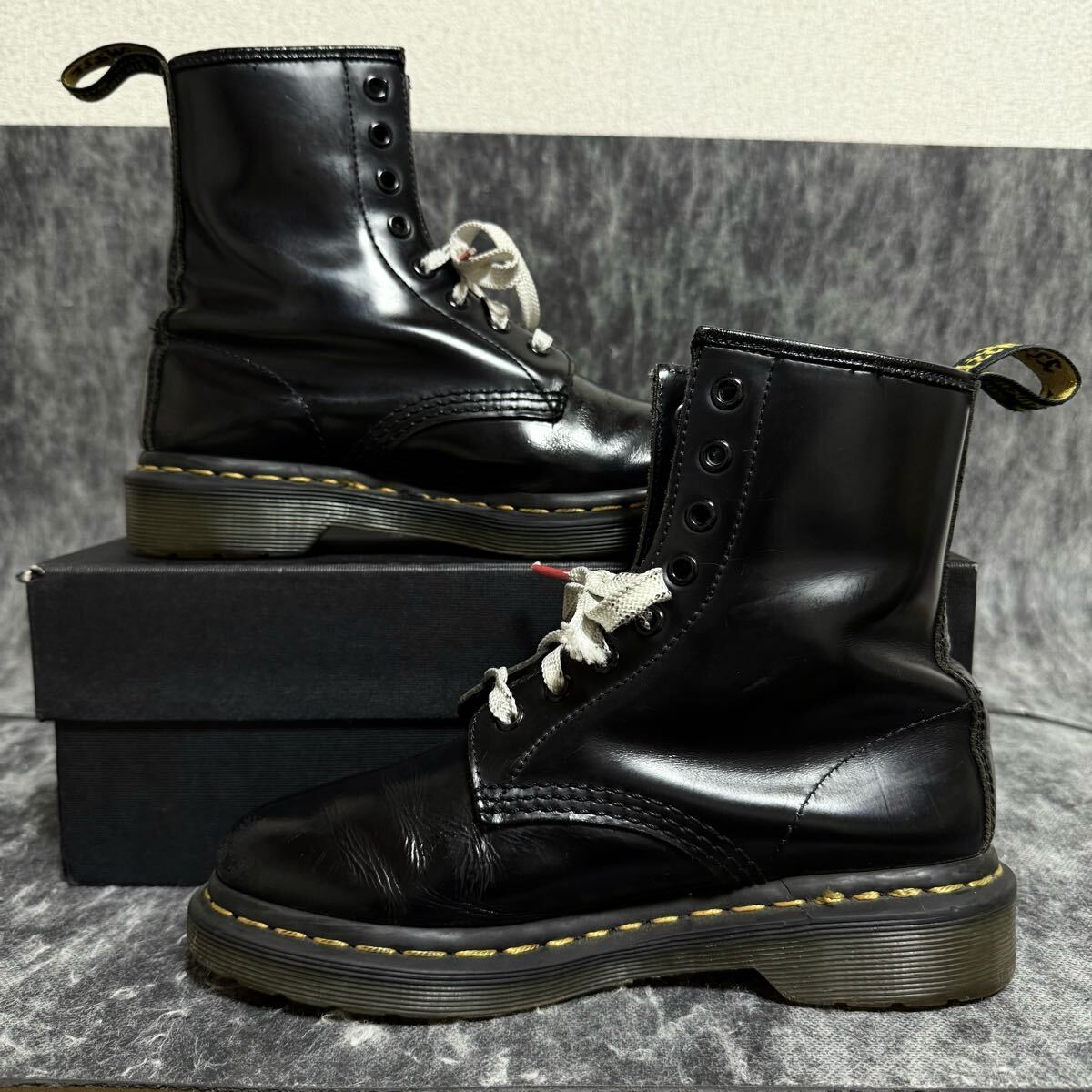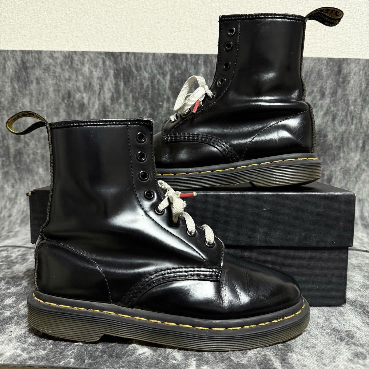 ヒールに5mm前後の擦れ、アッパーに若干の汚れが見受けられます。(画像7枚目など)