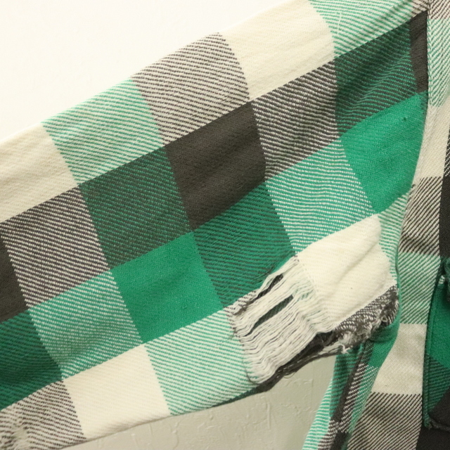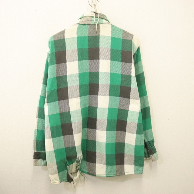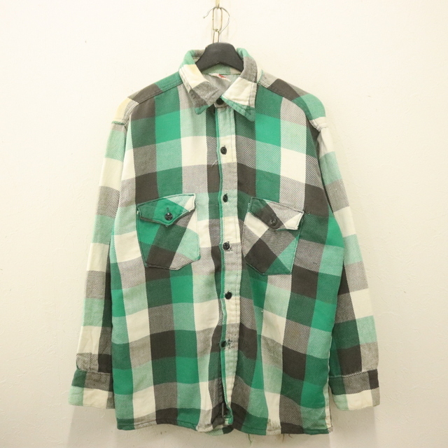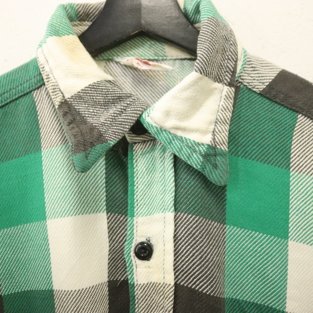 G999 70sビンテージ FROSTPROOF 長袖ヘビーネルシャツ■1970年代製 表記16ハーフサイズ チェック グリーン ボロ BORO アメカジ 古着 激安