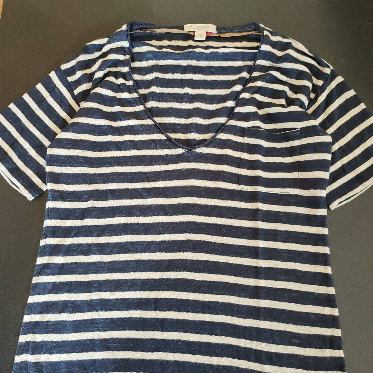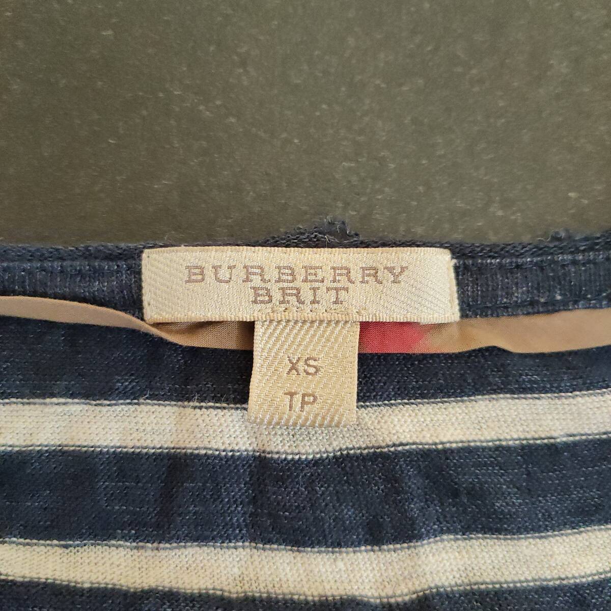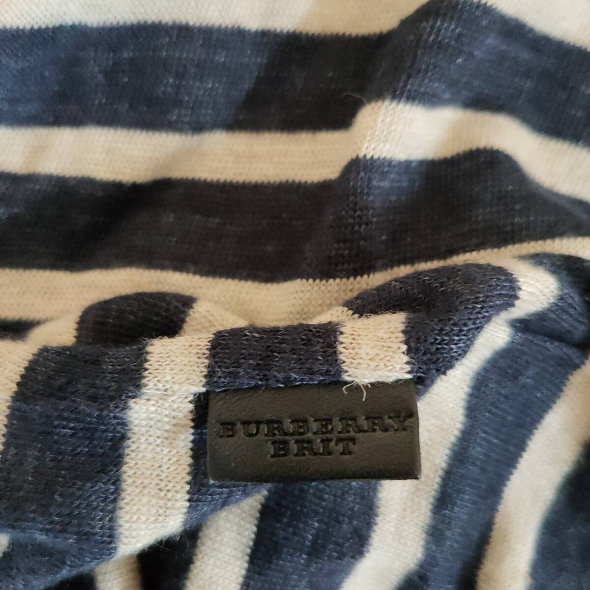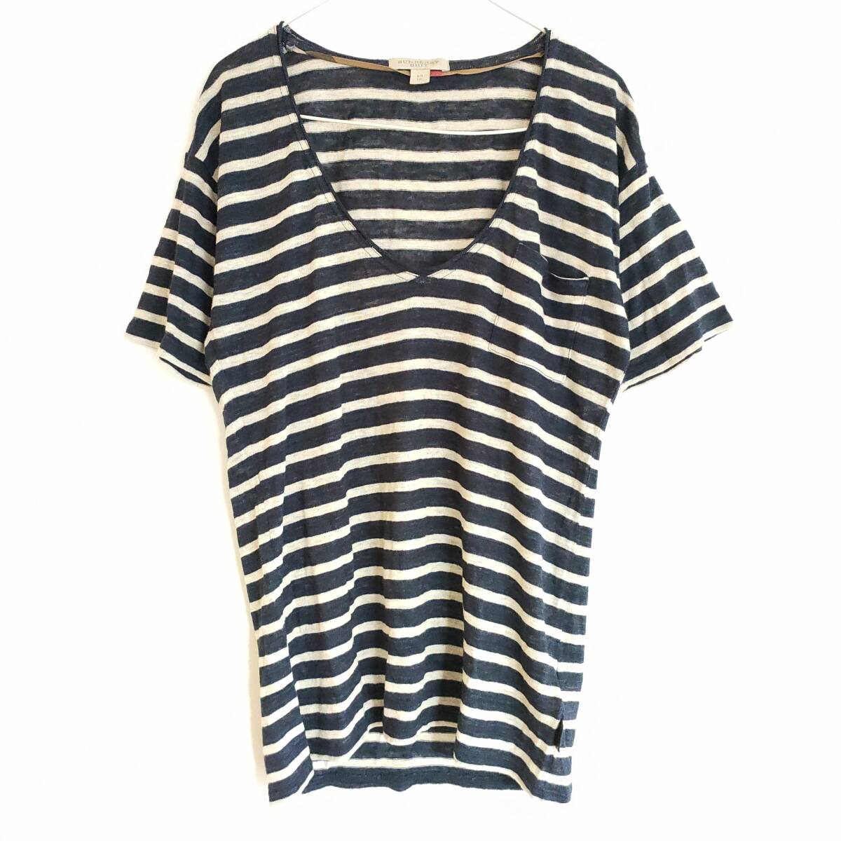 バーバリー ブリット BURBERRY BRIT ボーダー Tシャツ 半袖 カットソー XSサイズ Vネック レディース リネン100% 麻 ブランドカットソー