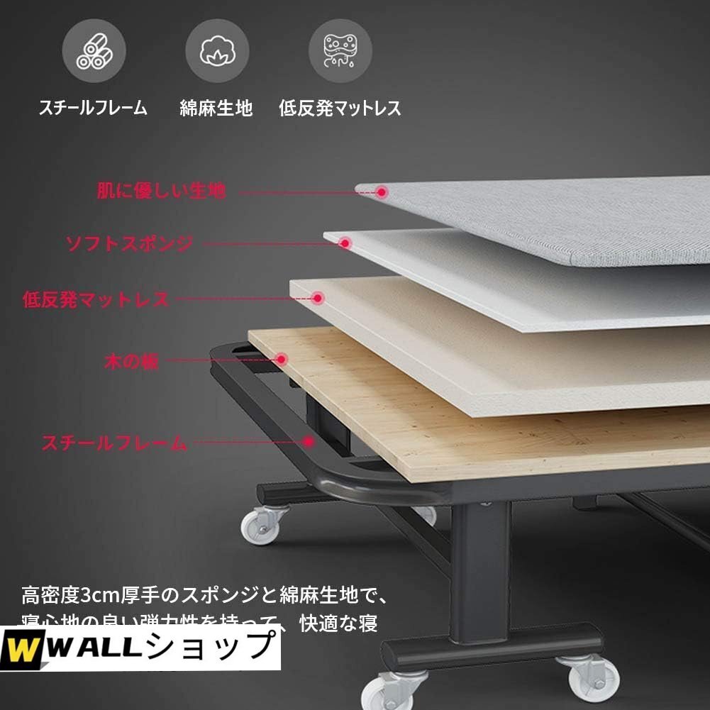 【高品質な素材】高密度で厚手のマットレス、寝心地の良い弾力性を持って、快適な寝心地を確保します。それに、ベッドの表面が綿麻生地で、肌に優しくて、通気性も抜群です。木の板とスポンジが結合し、バランスの良い支え力を提供しながら、睡眠の快適性も兼ねています。ベッド全体は高品質なスチール製フレームで構成しており、耐荷重が高めて、長期間でご使用いただけます。それに、滑り止め設計なので、安定性が良い、安全な睡眠を保証します。