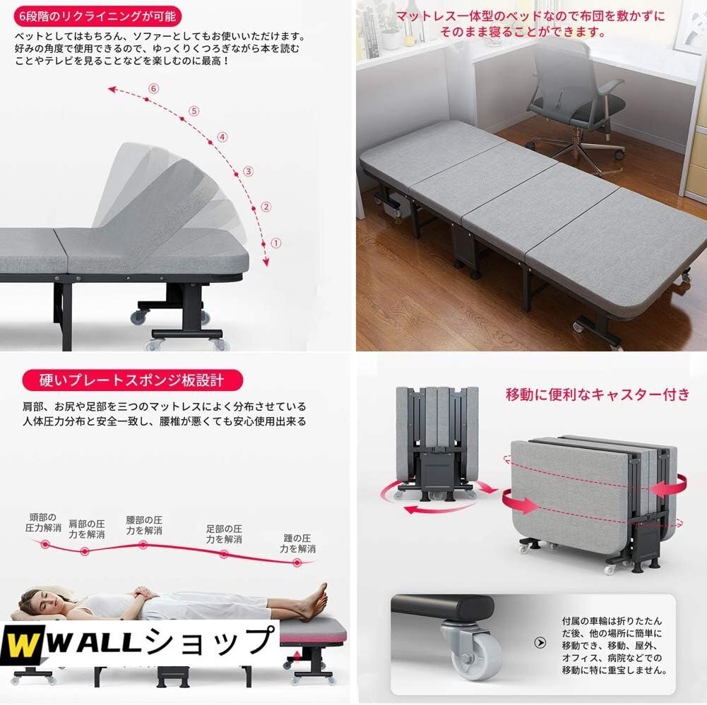 折りたたみベッド リクライニングベッド 組立不要 簡易ベッド マットレス一体型 四つ折り シングル 携帯便利 簡単収納【幅70cm】