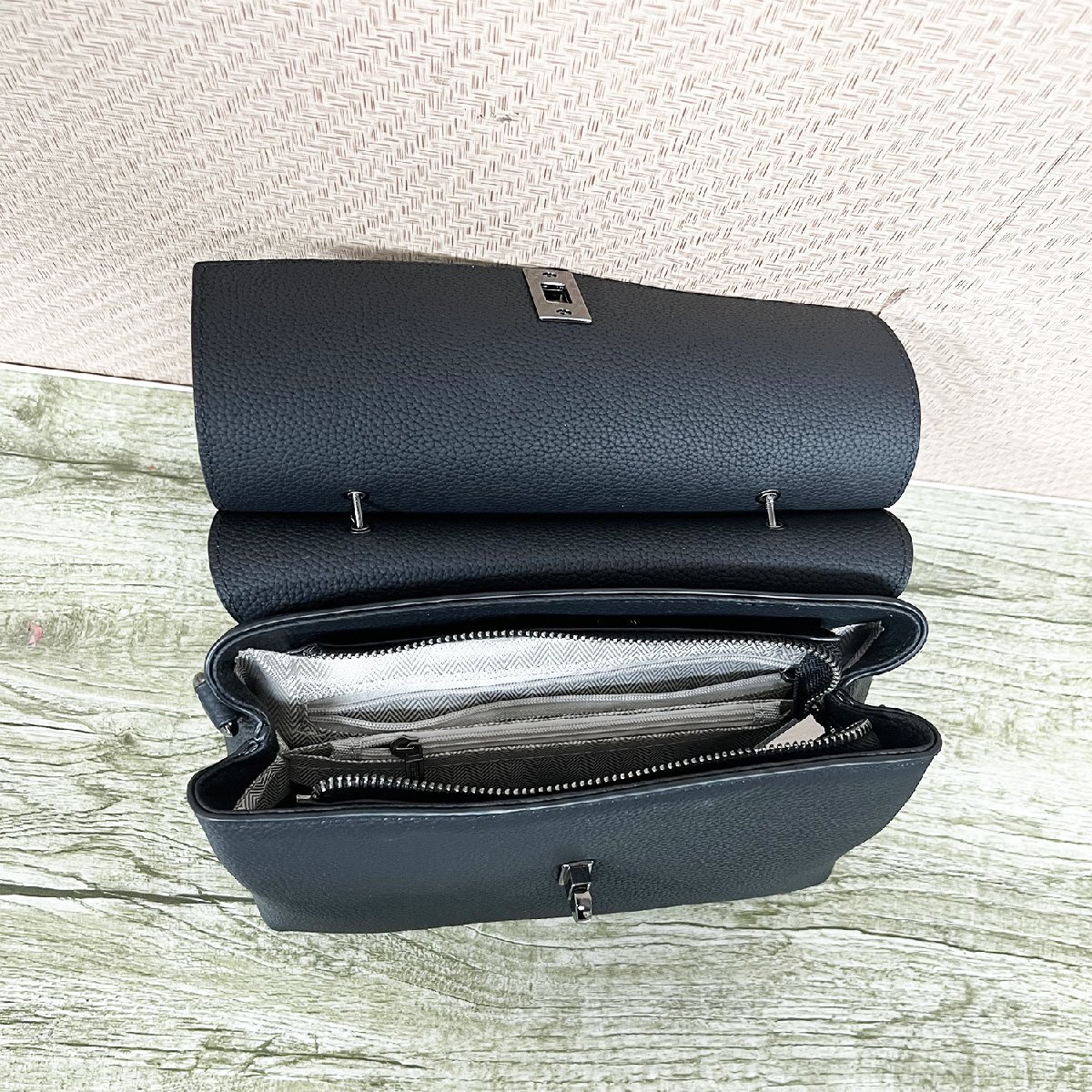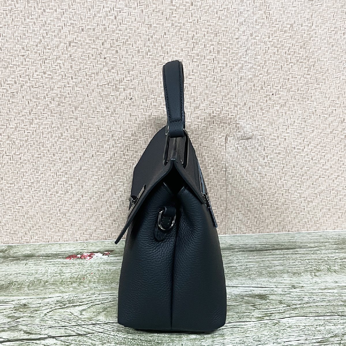 手触りなめらかなシボ感が特徴のレザーを使用しております。高級ランクにいちするフルグレインの牛本革を使用しておりますので、上質な質感になります。傷や水にも強くお手入れも楽々で毎日使うバッグにピッタリ。