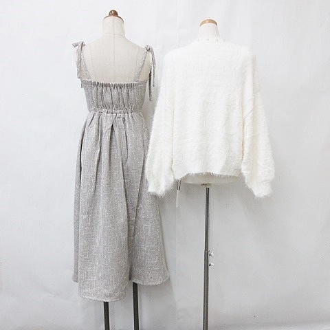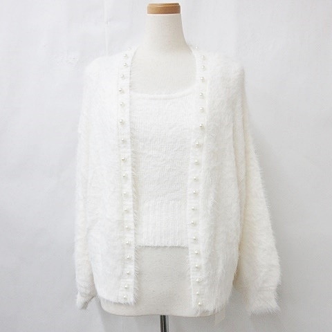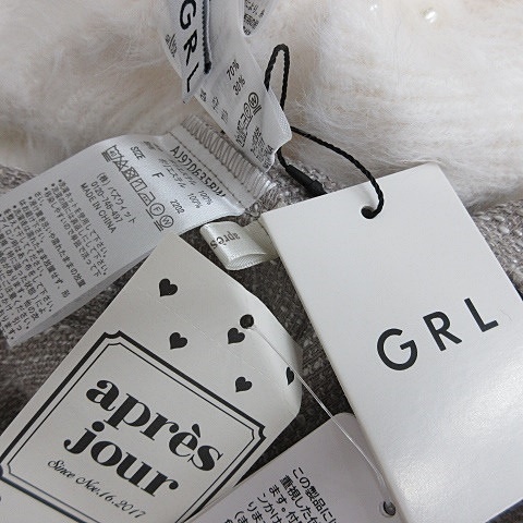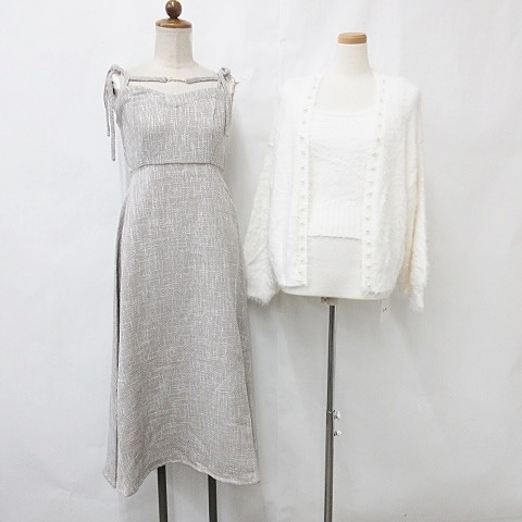未使用品 GRL apres jour アンサンブルニット キャミワンピース 2点セット 長袖 パール キャミ ロング フレアー 白 ベージュ F レディース