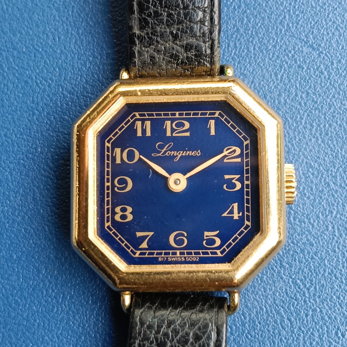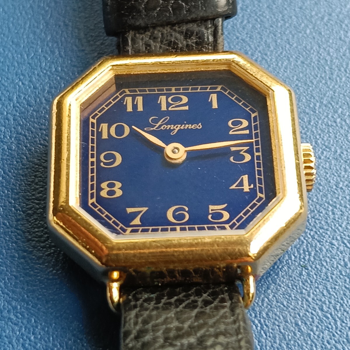ロンジン LONGINES 817.5092 手巻 オクタゴン 稼働 ヴィンテージ 青文字盤 スモセコ レディース 腕時計