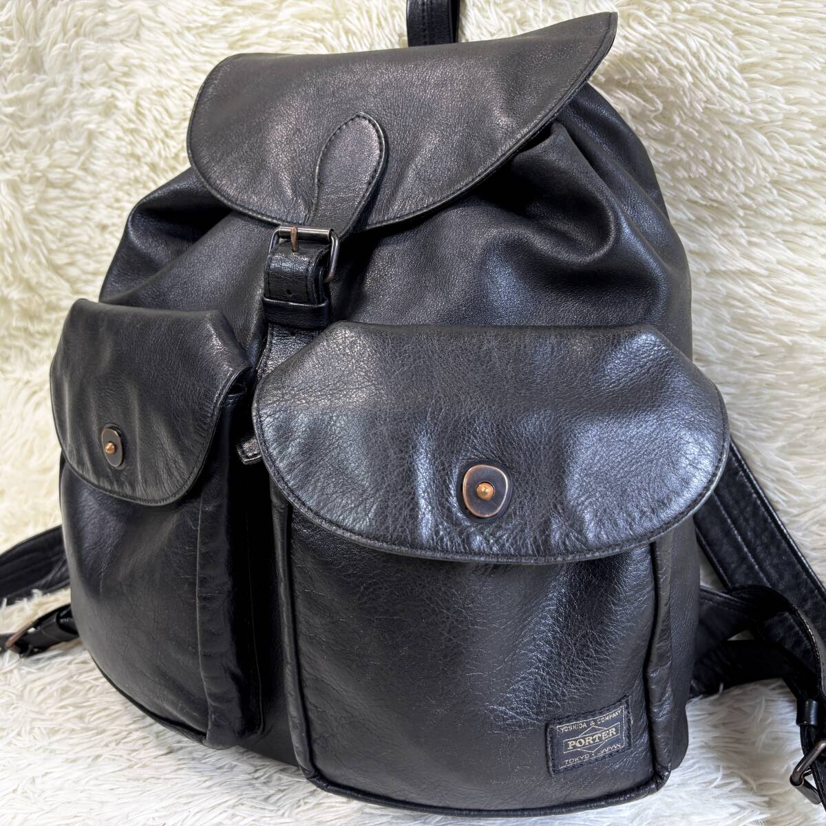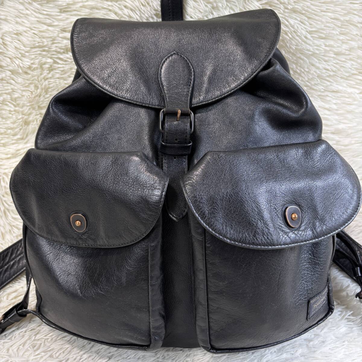 1円〜 ポーター PORTER コルチナ 吉田カバン オールレザー 本革 リュック バックパック バッグ ビジネス ブラック 黒 メンズ 多機能