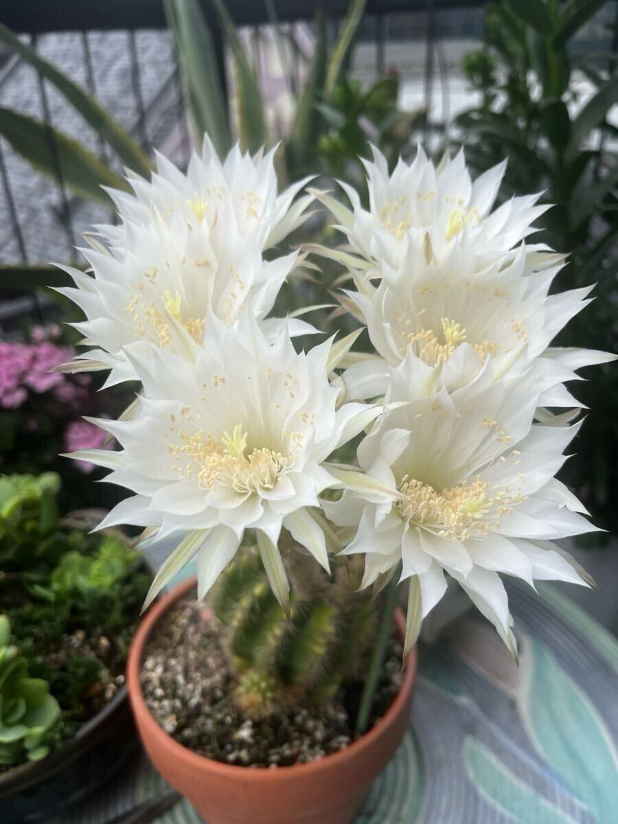 花サボテン 白い大きい花安価第四種郵便(植物)発送、夜咲いて、株が大きくなるにつれて、お花も大きくなり、何度も咲く様になります。画像は花咲いた親株