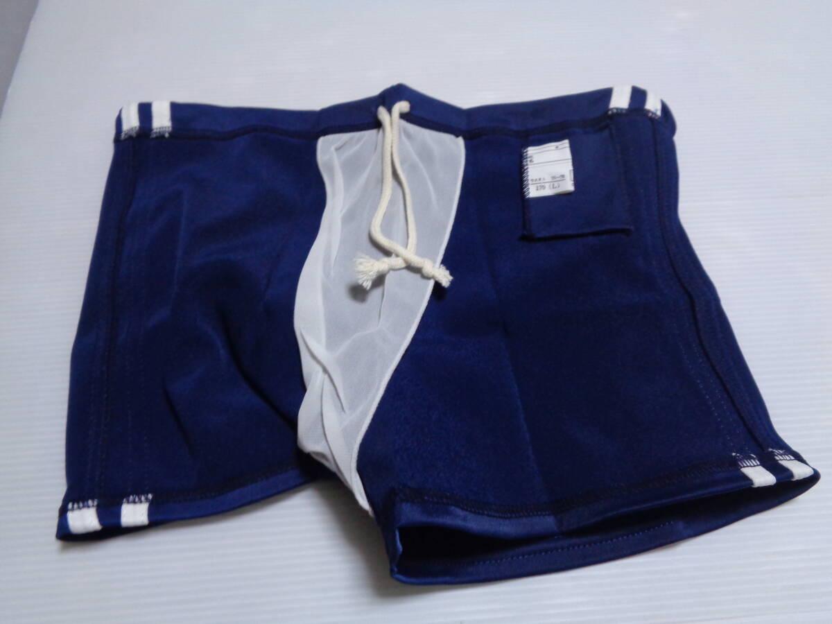 170(L) 紺×白 男子 ブロンド社 東レ ナイロン100% 海パン 海水パンツ スクール水着 昭和レトロ 未使用