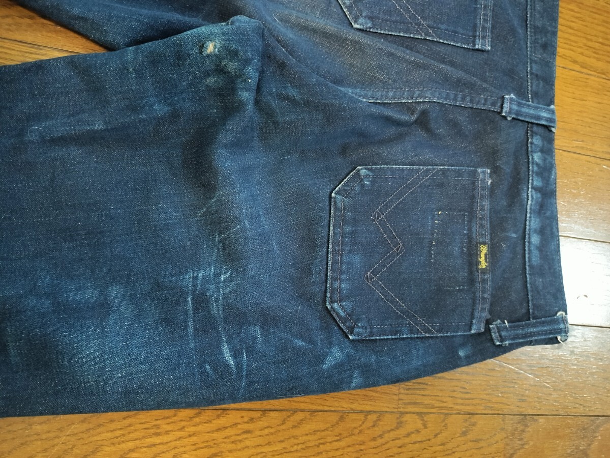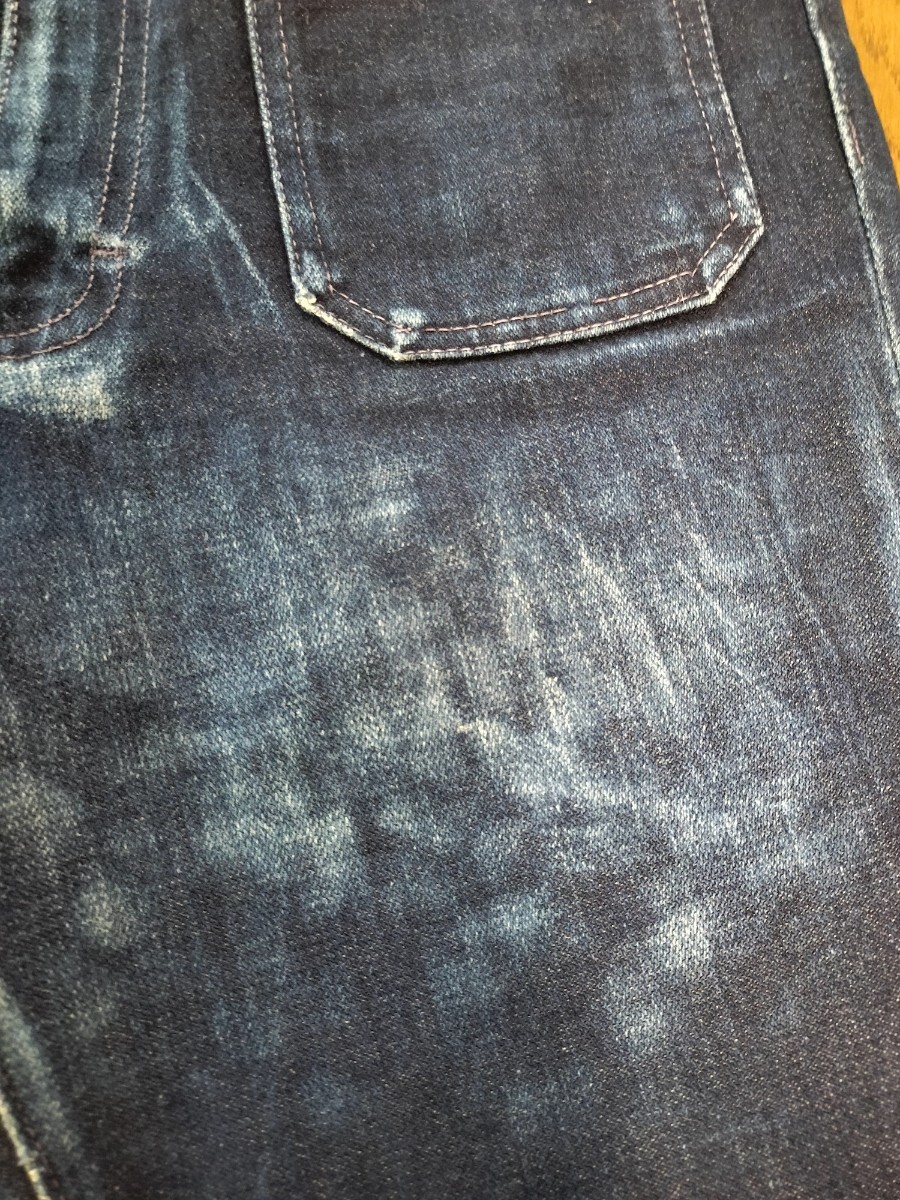 コンディション 着用による太ももにあたり、お尻に擦り傷ダメージあります。後ろポケットにパッチの跡のような縫い目の跡がありますがデザインか跡か不明です(画像9参照)