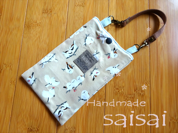 *saisai* ハンドメイド  スマホポーチ シマエナガ柄 ♪