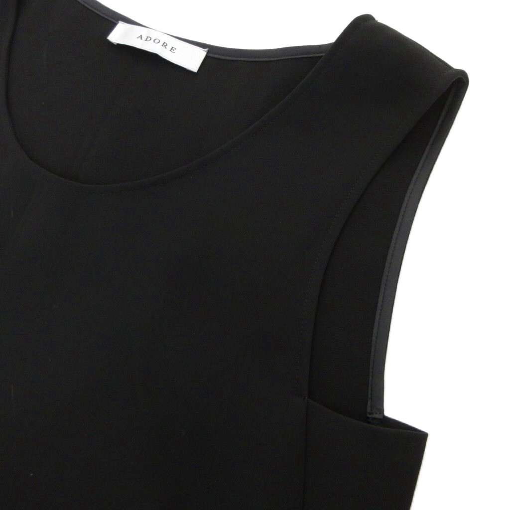 アドーア ADORE 23SS ドライタッチダブルクロストップス Uネック ノースリーブブラウス 38 黒 ブラック /UO レディース
