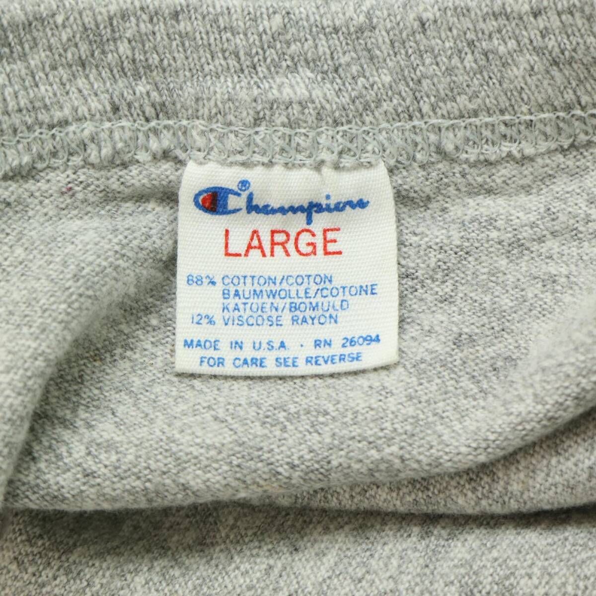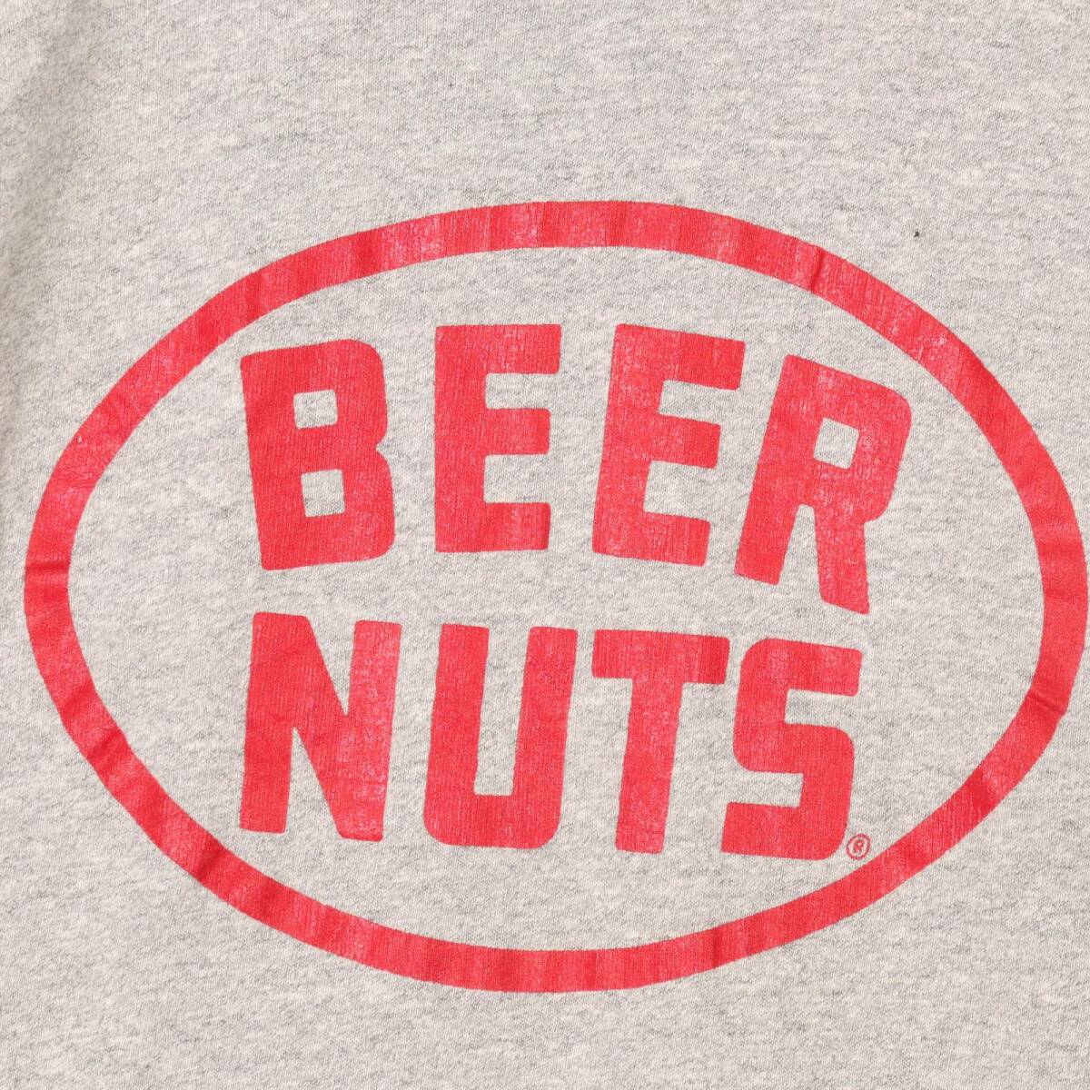 | 【商品管理番号】 A5042 【ブランド】 Champion/チャンピオン 【サイズ】 L 【実寸サイズ】 肩幅:約51cm 着丈:約74cm 身幅:約51cm 袖丈:約18cm 【主な素材】 表地 : コットン 【色】 グレー 【仕様】 生産国 : USA製 80年代 シングルステッチ 企業ロゴ BEER NUTS 8812 【状態】 特記事項:使用感あり | |||