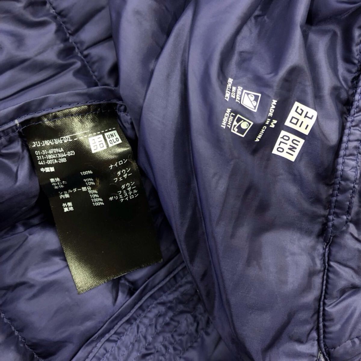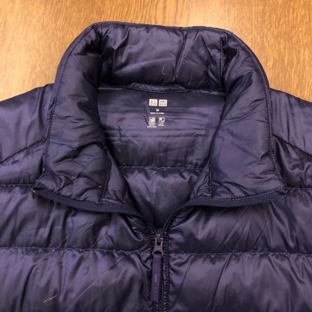 【め077】UNIQLO ライトダウンジャケット Mサイズ パープル 長袖 スタンドカラー 耐久撥水加工 メンズブランド古着 ユニクロ 送料無料