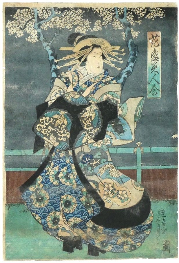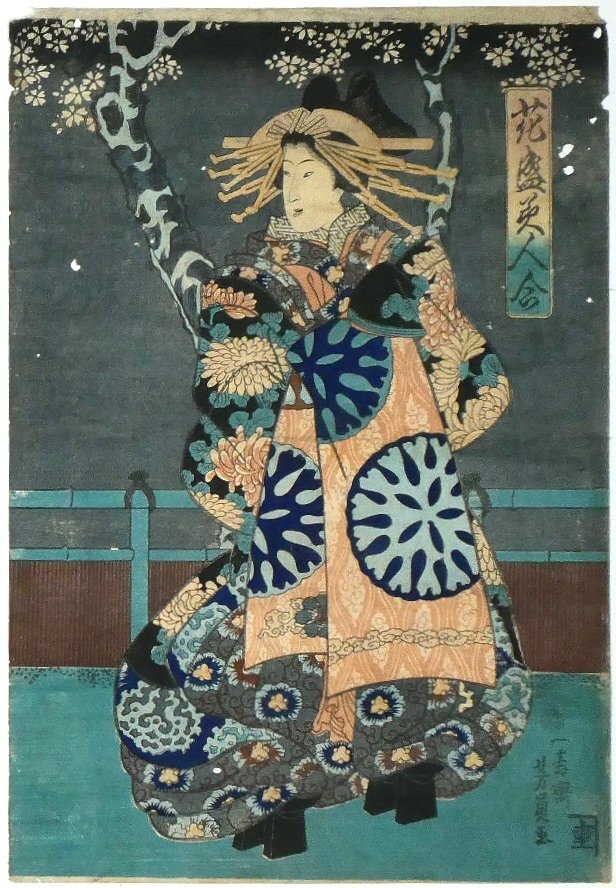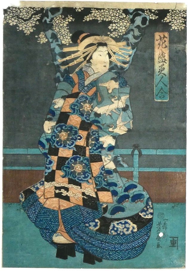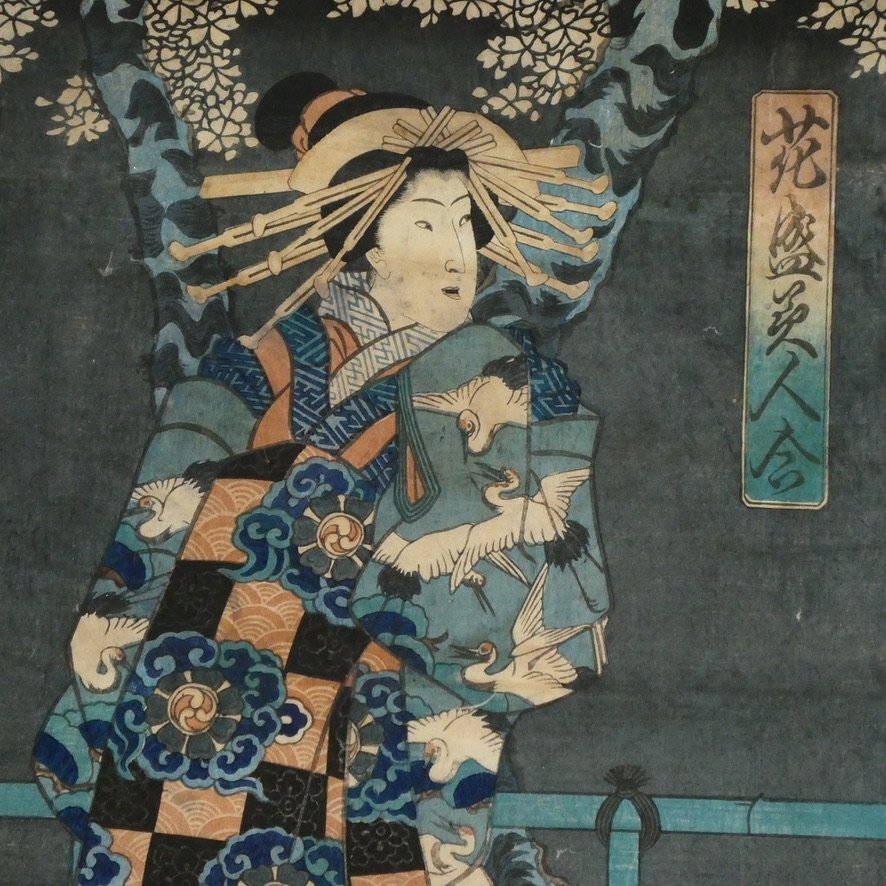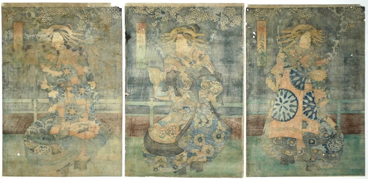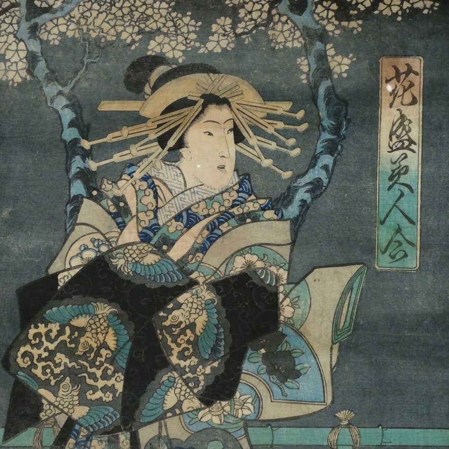 181 【3枚まとめて】歌川芳員 花盛美人合◆美人絵◆遊女◆版画◆浮世絵◆真作