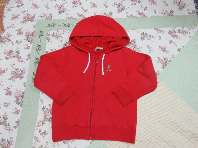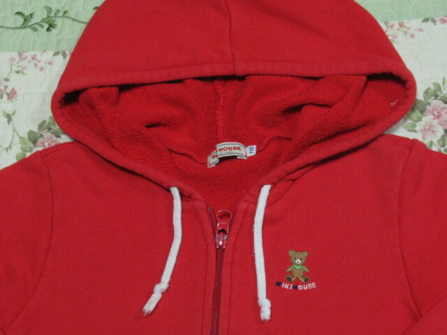ミキハウス110cmベア刺しゅう赤パーカ*送料185円