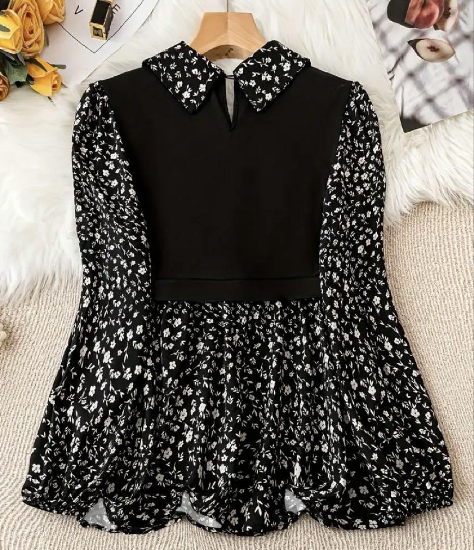 韓国 韓国ファッション オルチャン ノーブランド プチプラ 海外 インポート レディース トップス Tシャツ バックプリント オシャレ シンプル デイジー柄 ゆったり ビックシルエット 体型カバー ビック フラワー プリント おおきい 大きいサイズ レディース 大きいサイズ チュニック 長袖
