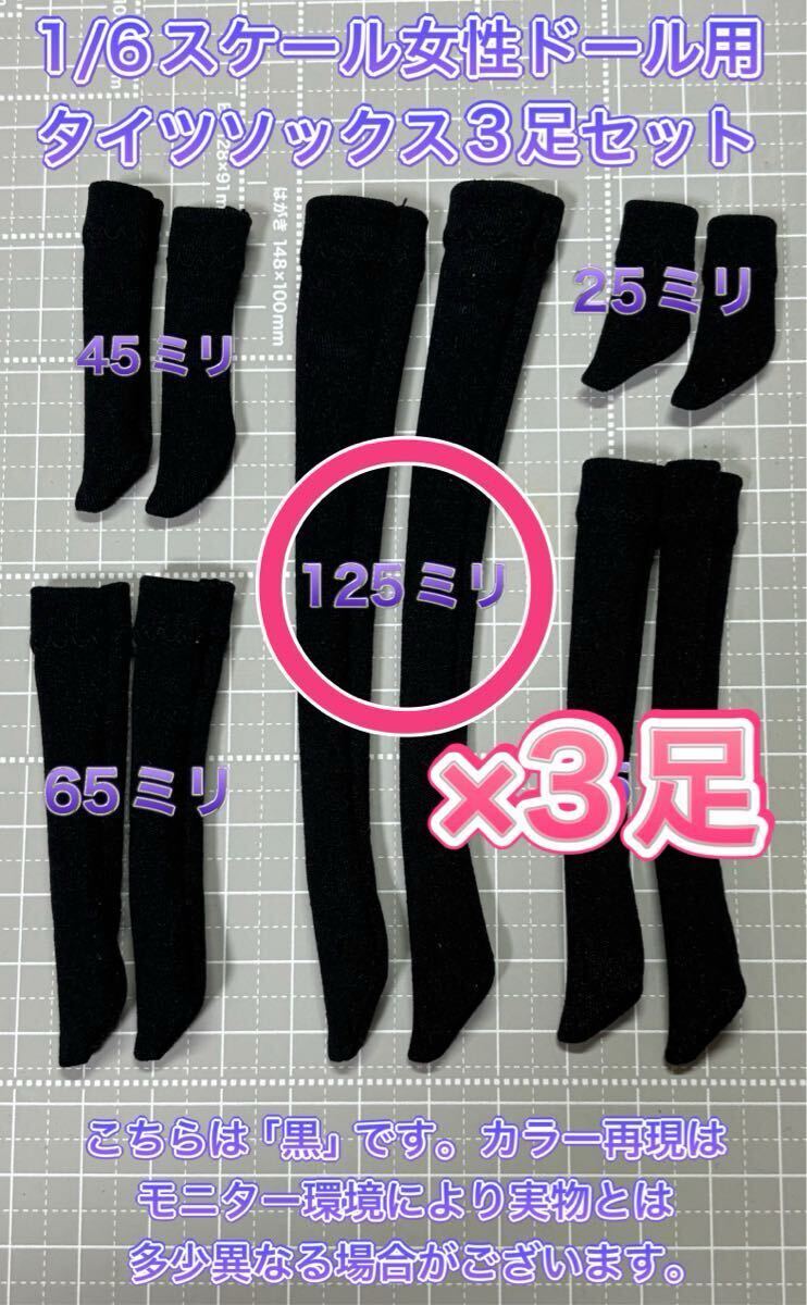 リカちゃん、ジェニー、ネオブライス、アイシードール 、オビツ27女性ボディ、ハッシュタグボディなどが着用出来る、薄手の化繊ソックス長さ違い、平置きで約125ミリの3足セットです。