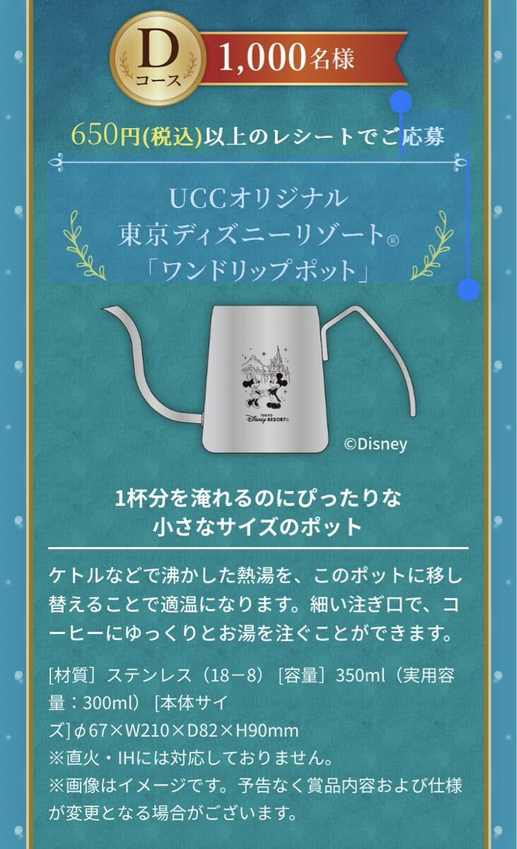 レシート懸賞 UCC オリジナル 東京ディズニーリゾート ワンドリップポット ディズニー ミッキー ミニー 抽選で1000名様に当たる!